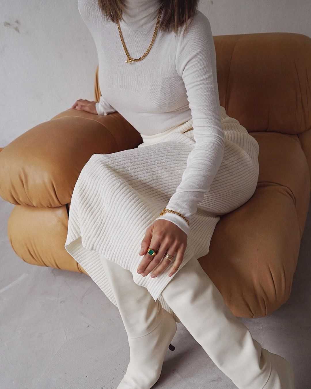 Если кожаная юбка кажется вам слишком смелой, вы можете сделать ставку на более сдержанную модель из твида или шерсти. Такие юбки выглядят элегантно и женственно, их принято выбирать в достаточно сильный мороз.