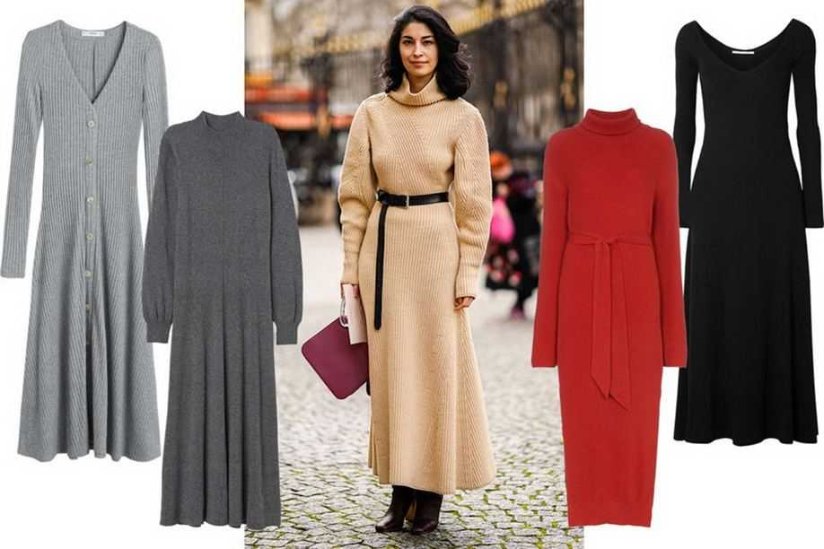 В зимние образы обязательно добавляйте приталенные трикотажные и трепетно вязаные платья с высоким воротом, V-образным вырезом, оголенной спинкой, что украшена шнуровкой, переплетами, костюмные варианты платьев в крое футляр и трапеция, солнце, дополненные оборочками.