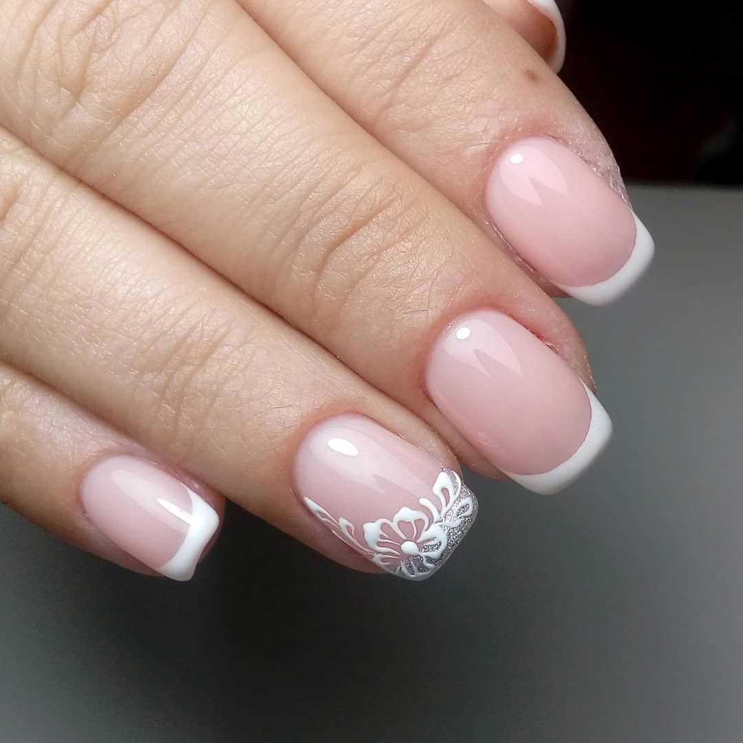 К классическому френчу относится дизайн в пастельных тонах, чаще всего в бело-розовом. Это удивительно красивое сочетание, которое изначально использовалось для выполнения французского дизайна.