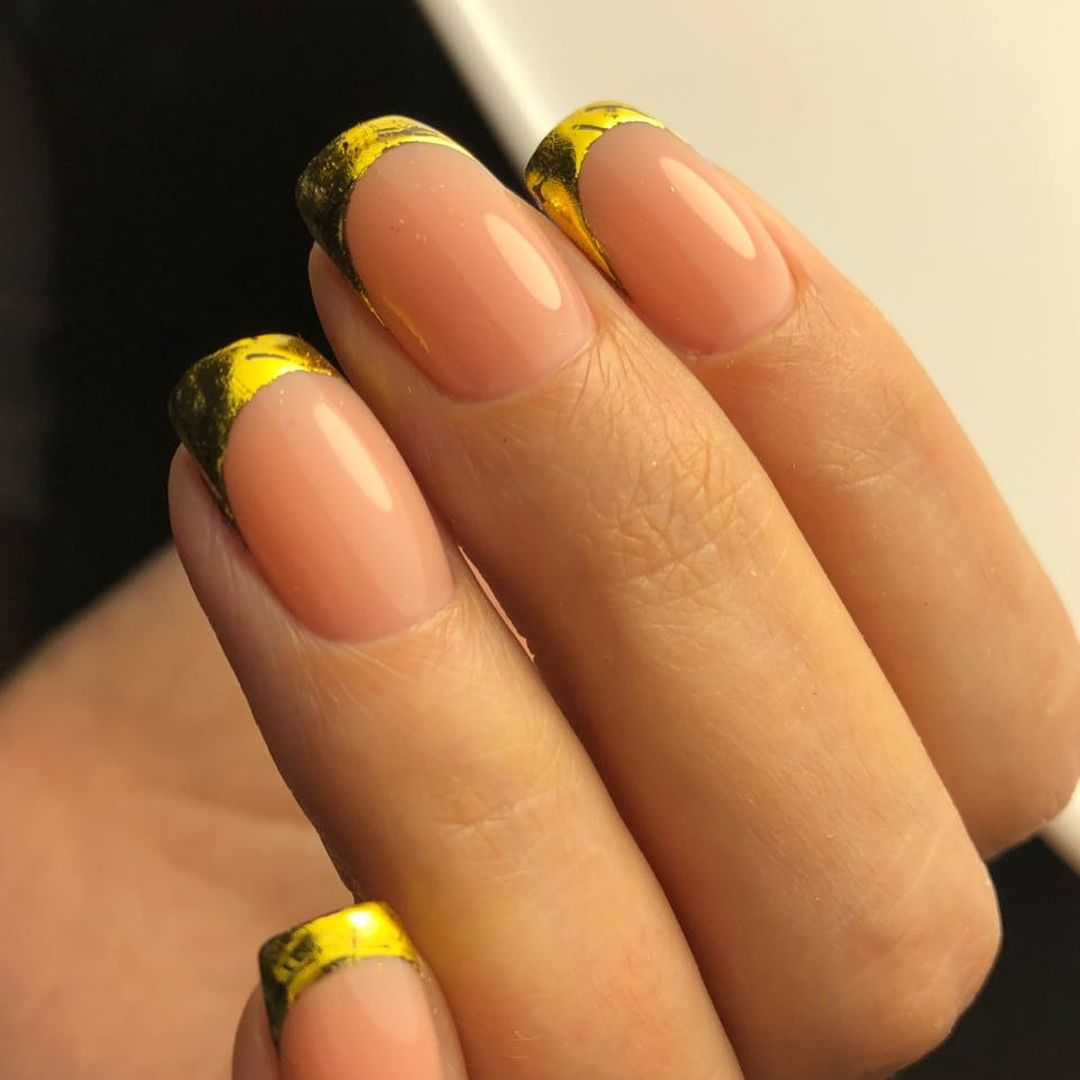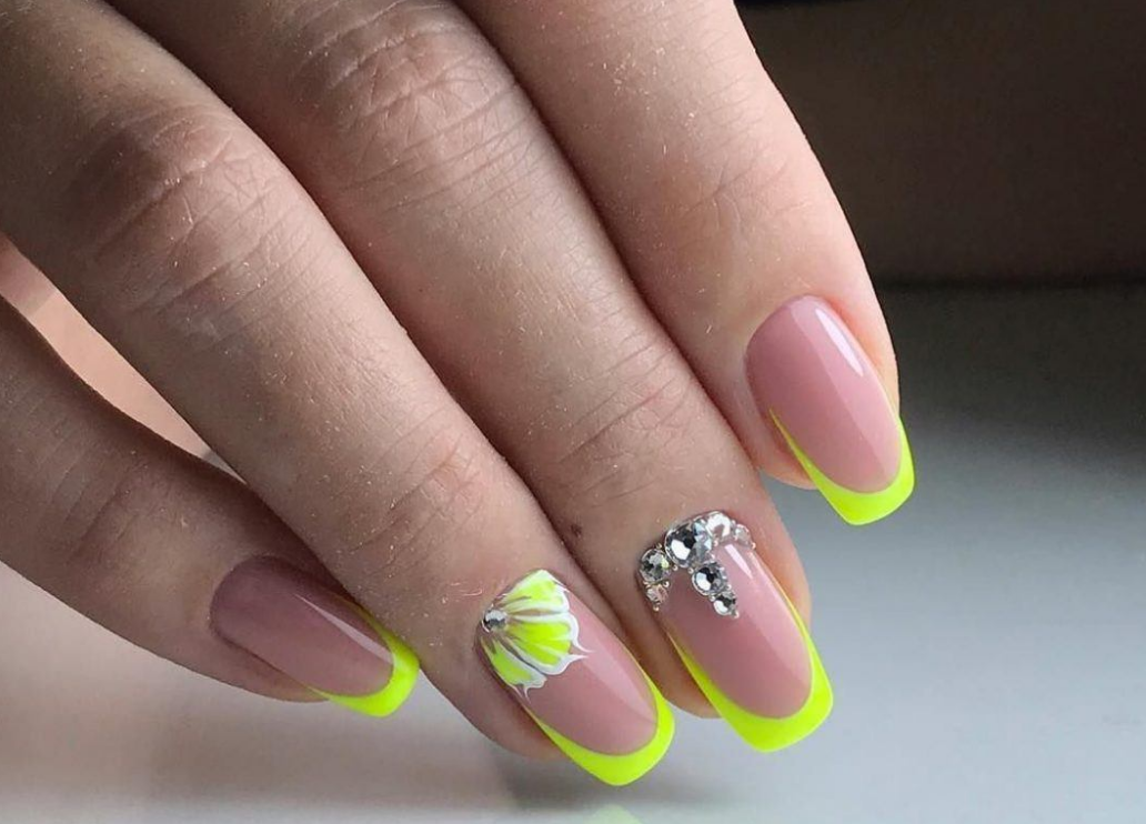 В отличие от зеленого, желтый цвет допустим в разных оттенках, начиная от пастельных и заканчивая неоновыми. Хотите яркий нейл на лето? Желтый french – идеальный вариант. Сочетают его с серебром, черной каймой, используют блески, камни.