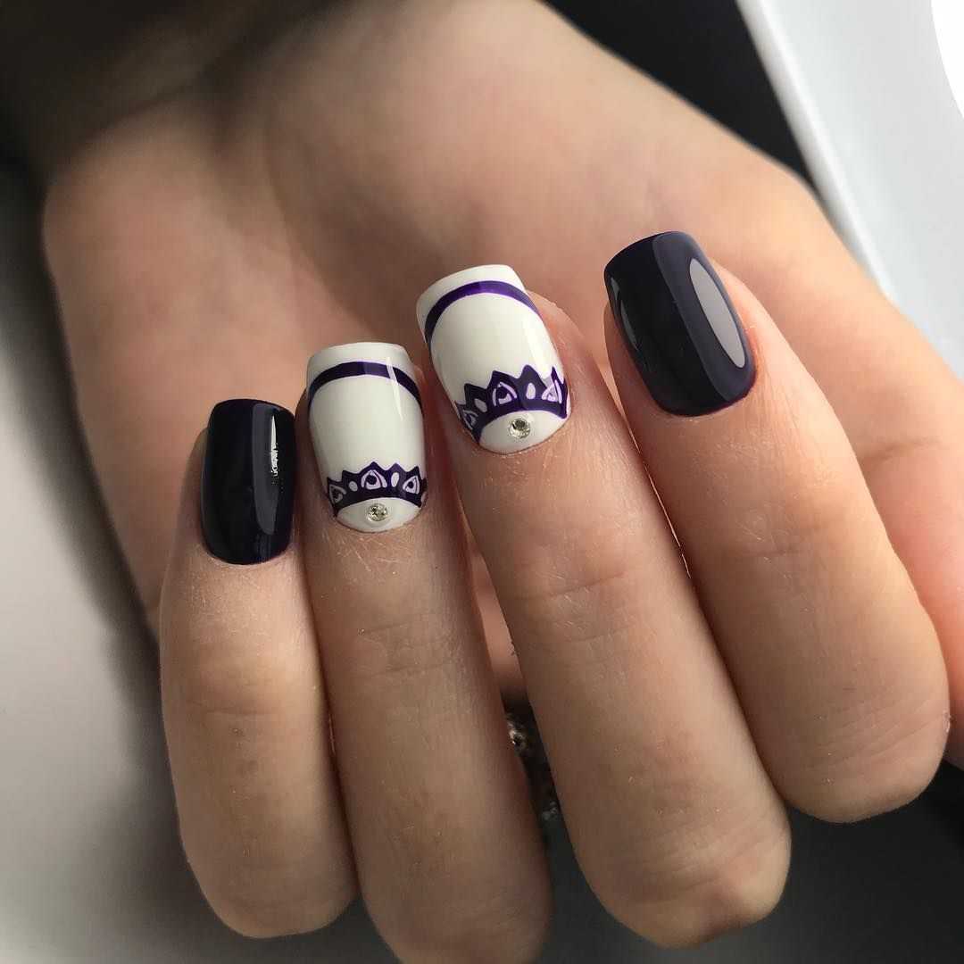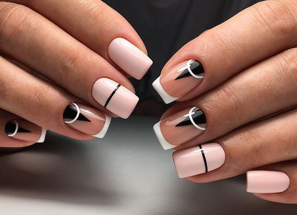 Геометрический рисунок уже длительное время входит в топ самых стильных видов дизайна ногтей. Он хорошо смотрится с френчем и делает его чуть более строгим, сдержанным. При желании его можно делать даже для рабочих будней. Но учитывайте, что в такой ситуации оттенки должны быть нейтральными.