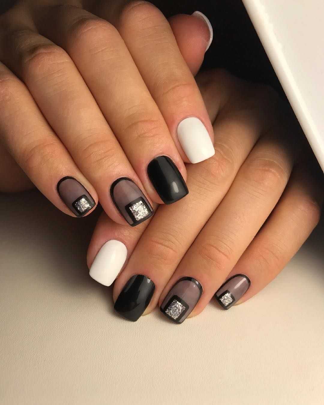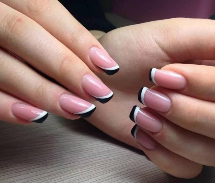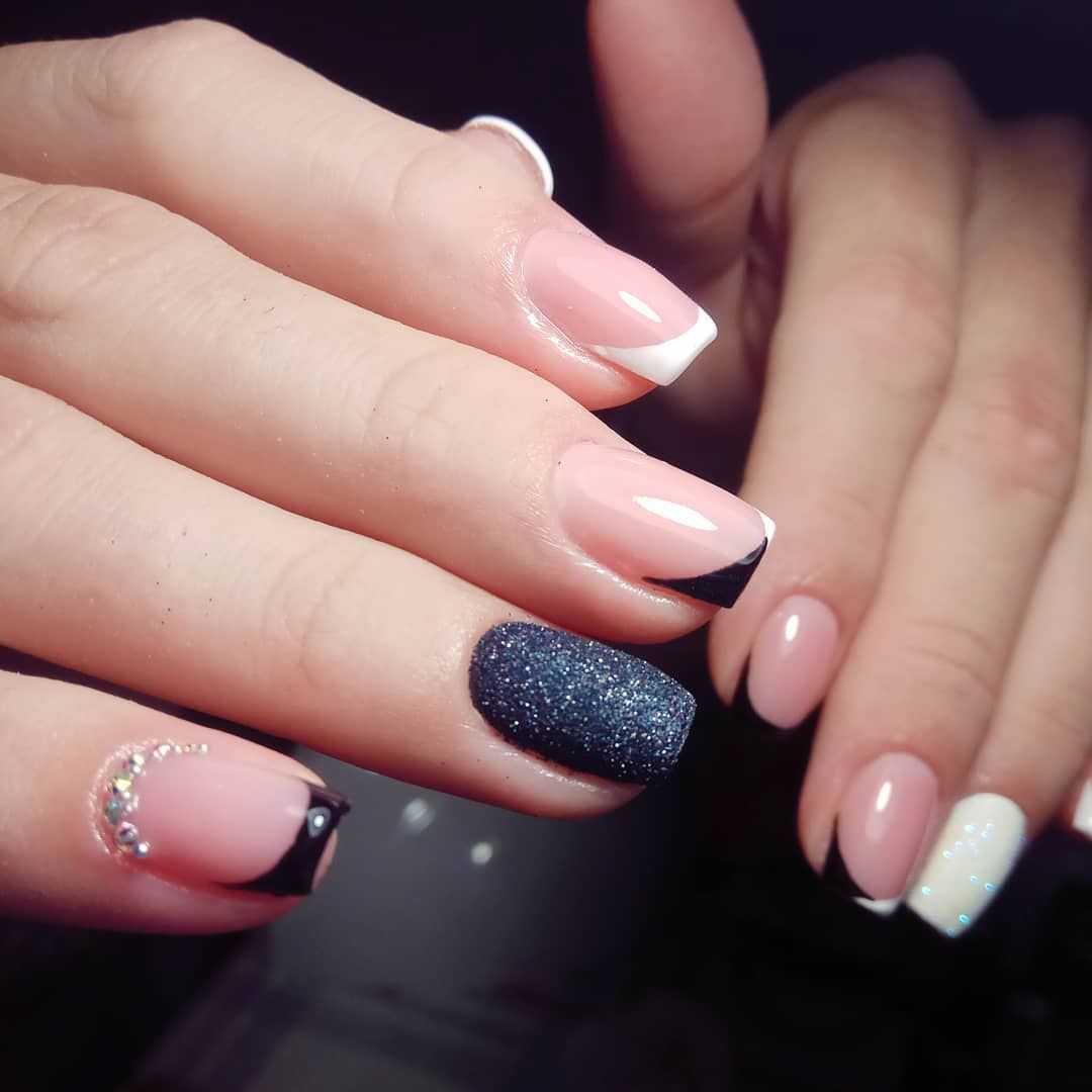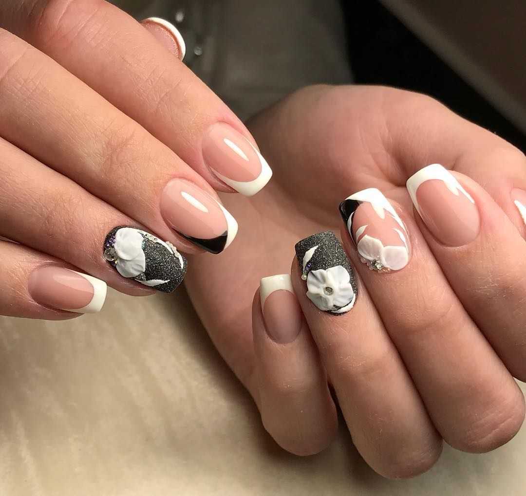 Черно-белым френчем можно украсить каждый ноготок (имеется в виду их форма и длина). Главное – подобрать правильный дизайн для женщины. Декор призван «разбавлять» строгий черно-белый дизайн.