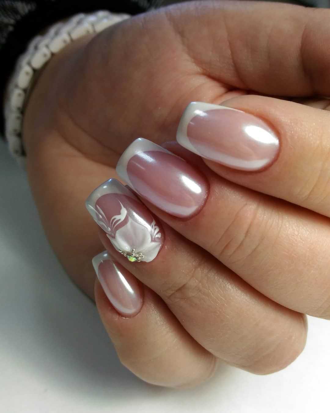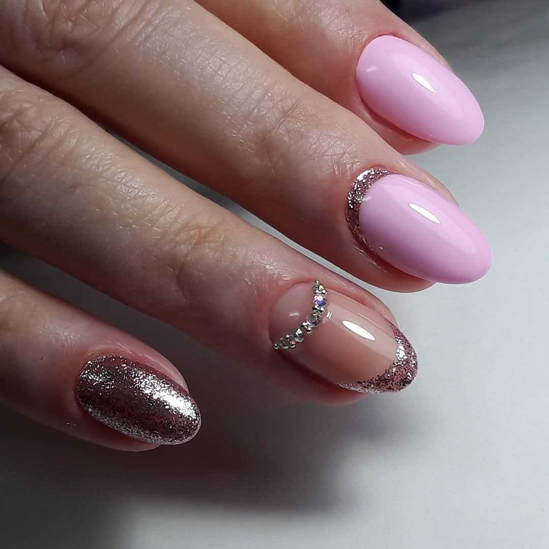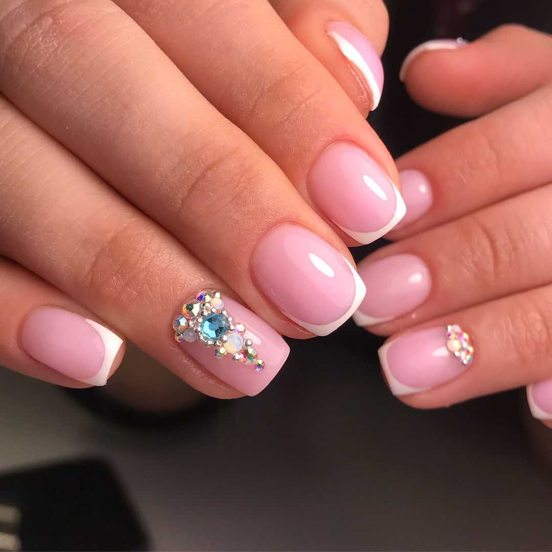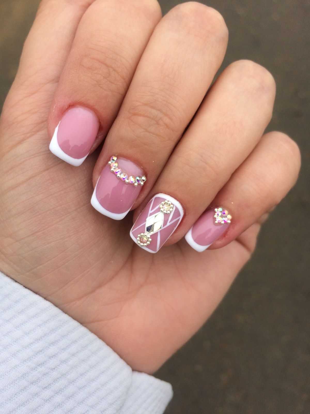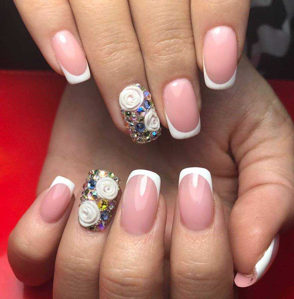 Украшают розовый френч стразами либо блёстками. Подойдет для романтичных натур.