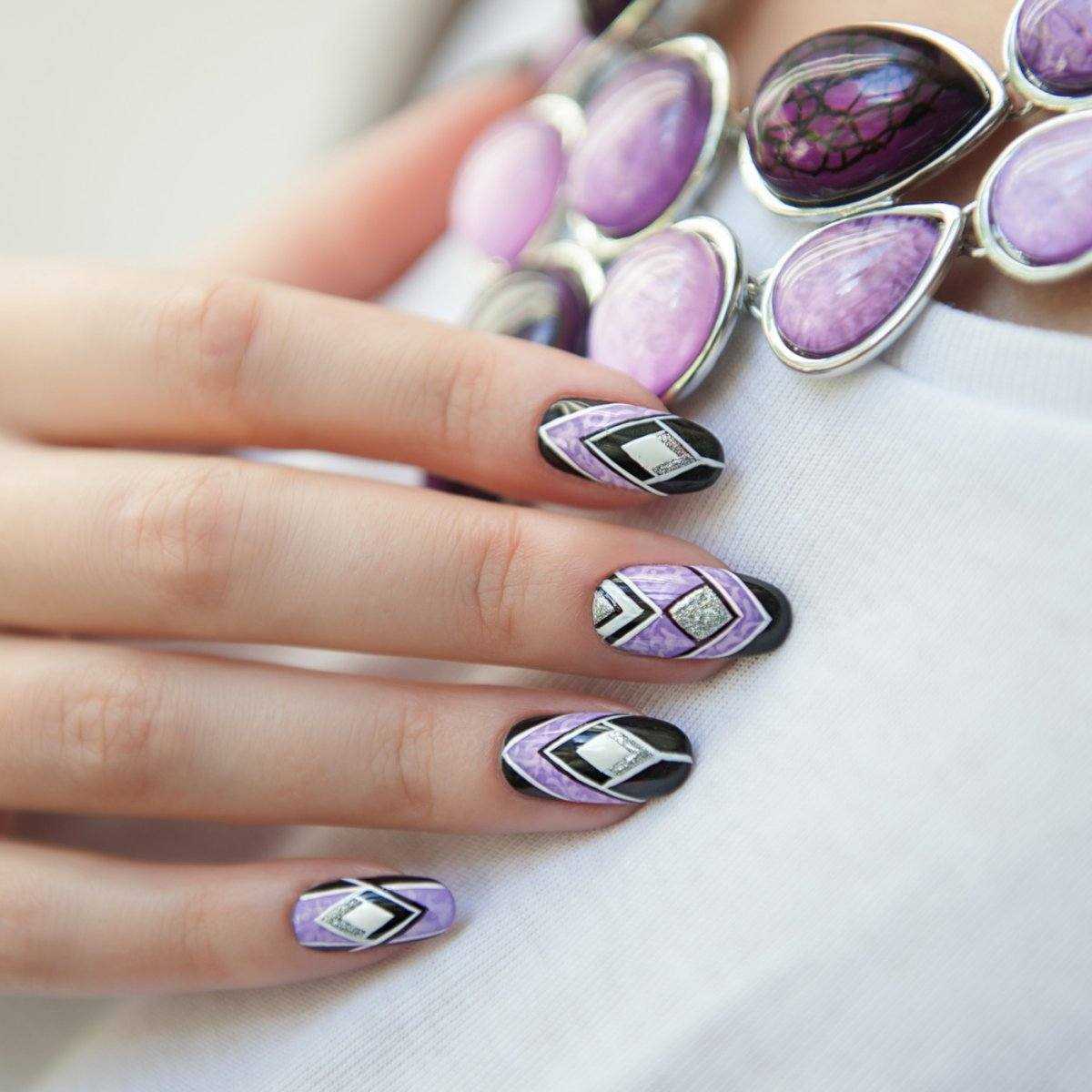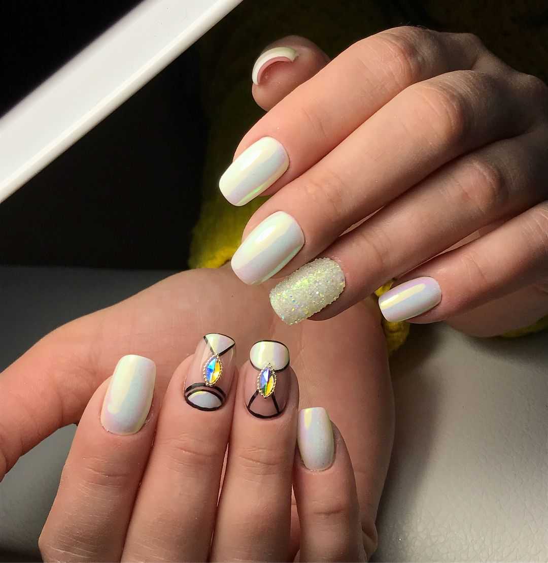 Геометрия часто содержит разные цвета, которые сочетаются друг с другом. Мастер также может добавлять блестки и стразы.
