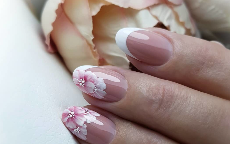 Нельзя отрицать актуальность цветочного рисунка. Он идеально дополняет французский маникюр и отлично смотрится в любое время года. Тонкие веточки и бутоны преимущественно выбирают осенью или зимой. Также это идеальное решение для любительниц лаконичных образов.