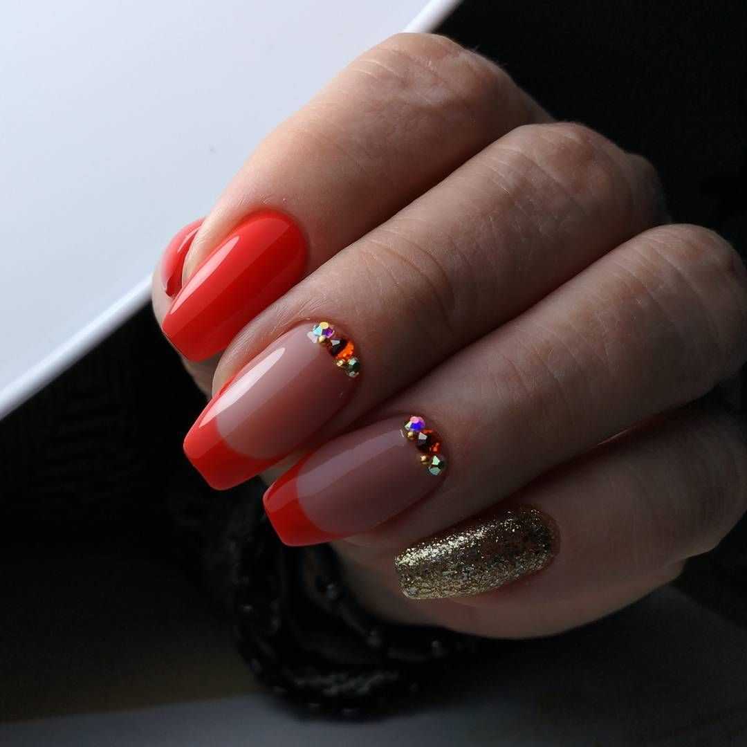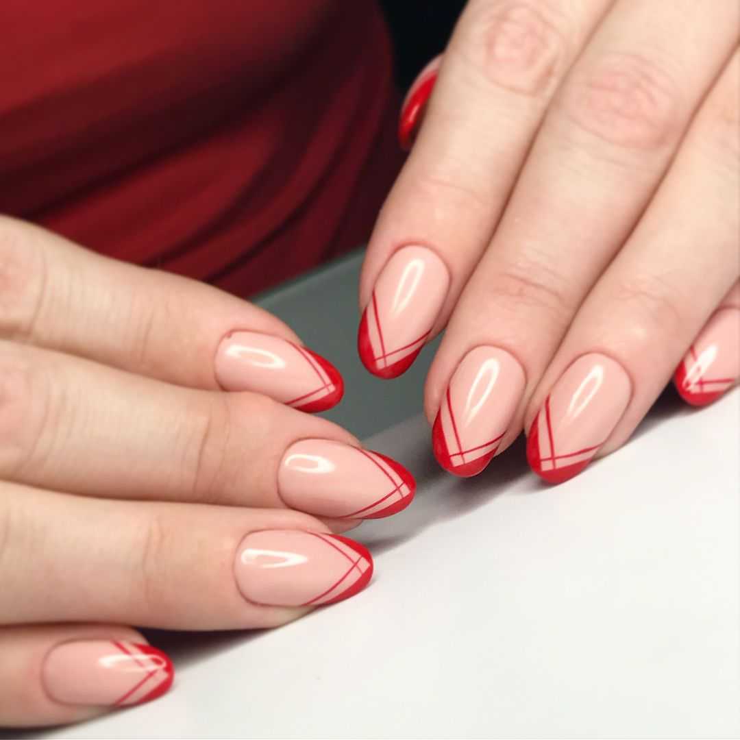 Красный цвет – трендовый в этом сезоне. Нейл-арт не мог остаться в стороне и не применить оттенок во french-дизайне. Смотрится такое решение элегантно и изыскано.