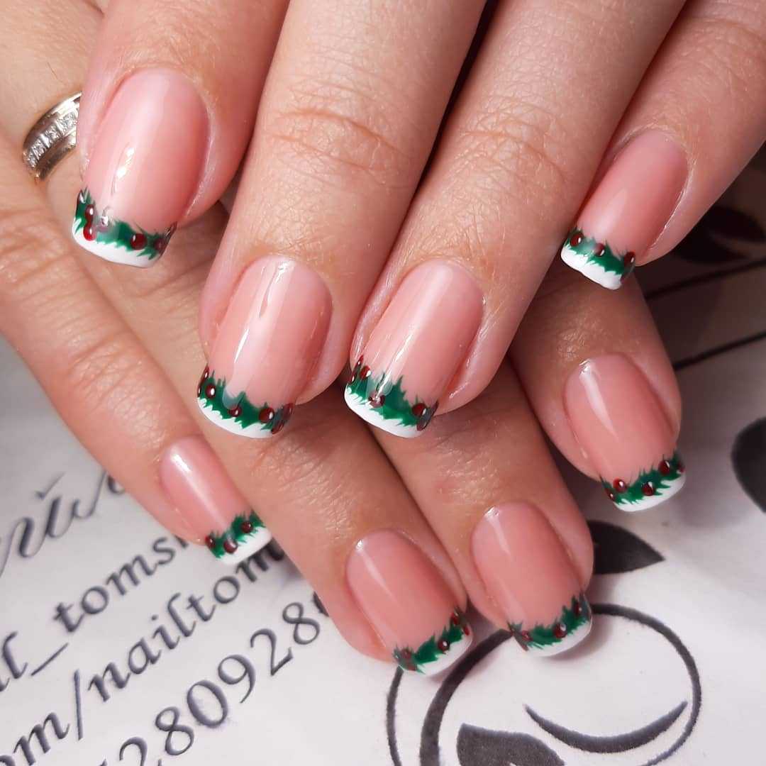 Простым, но изящным вариантом нового года станет френч на ногтях, но без покрытия. Это аккуратно подточенные ноготки без какого-то либо лака сверху. Такой гигиенический маникюр должен быть просто идеальным, без погрешностей. Следует внимательно отнестись к его исполнению. Больше внимания при этом необходимо уделить торцу ногтевой пластины и состоянию кутикулы.