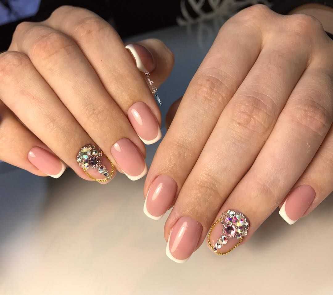 На коротких овальных ногтях идеально будет смотреться классический французский маникюр. При его создании следует придерживаться правил: