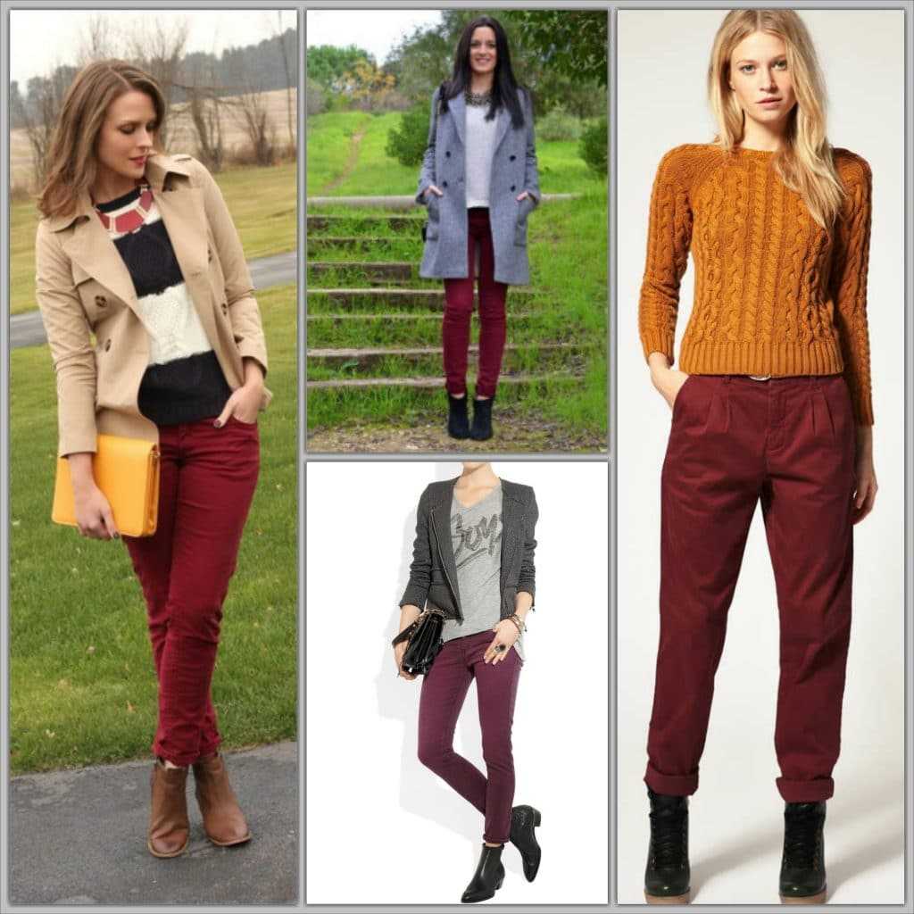 Девушка в бордовых джинсах никогда не останется без внимания – этот цвет выбирают только те, кто по-настоящему уверен в себе. При определённых обстоятельствах можно добавить элементы одежды кирпичного, бордового, коричневого оттенков. Решая пополнить свой гардероб, учитывайте, что насыщенные оттенки подходят не всем, а сочетание с другими цветами требует соблюдения определённых правил.