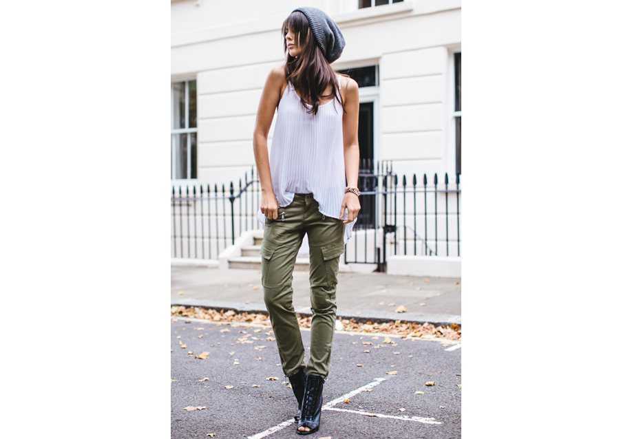 Брюки прямого кроя с большим количеством карманов относятся к категории унисекс, поскольку пришли из мужского гардероба. Тем не менее на женской фигуре карго смотрятся особенно изящно, делая женский образ еще более хрупким.