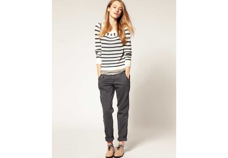 Если универсальные джинсы успели надоесть, а отказываться от комфорта вы не собираетесь, выбирайте брюки-чинос. Для моделей характерен свободный крой и разная степень зауженности к низу. Но объединяет их одно – превосходного качества натуральные ткани, среди которых преобладают хлопок и лен.