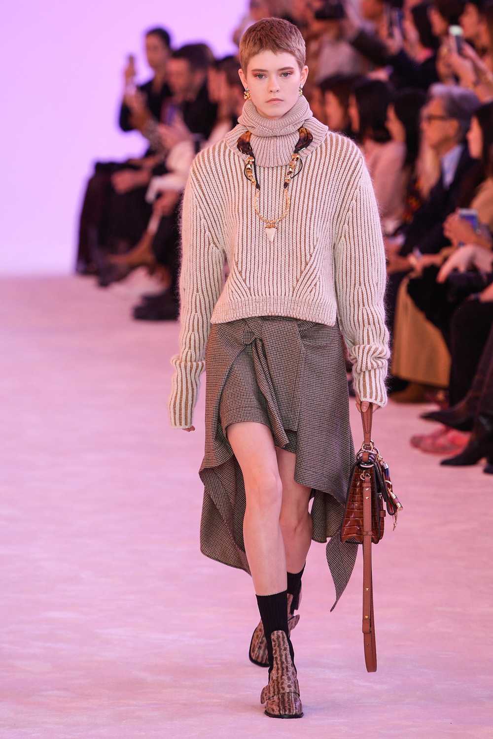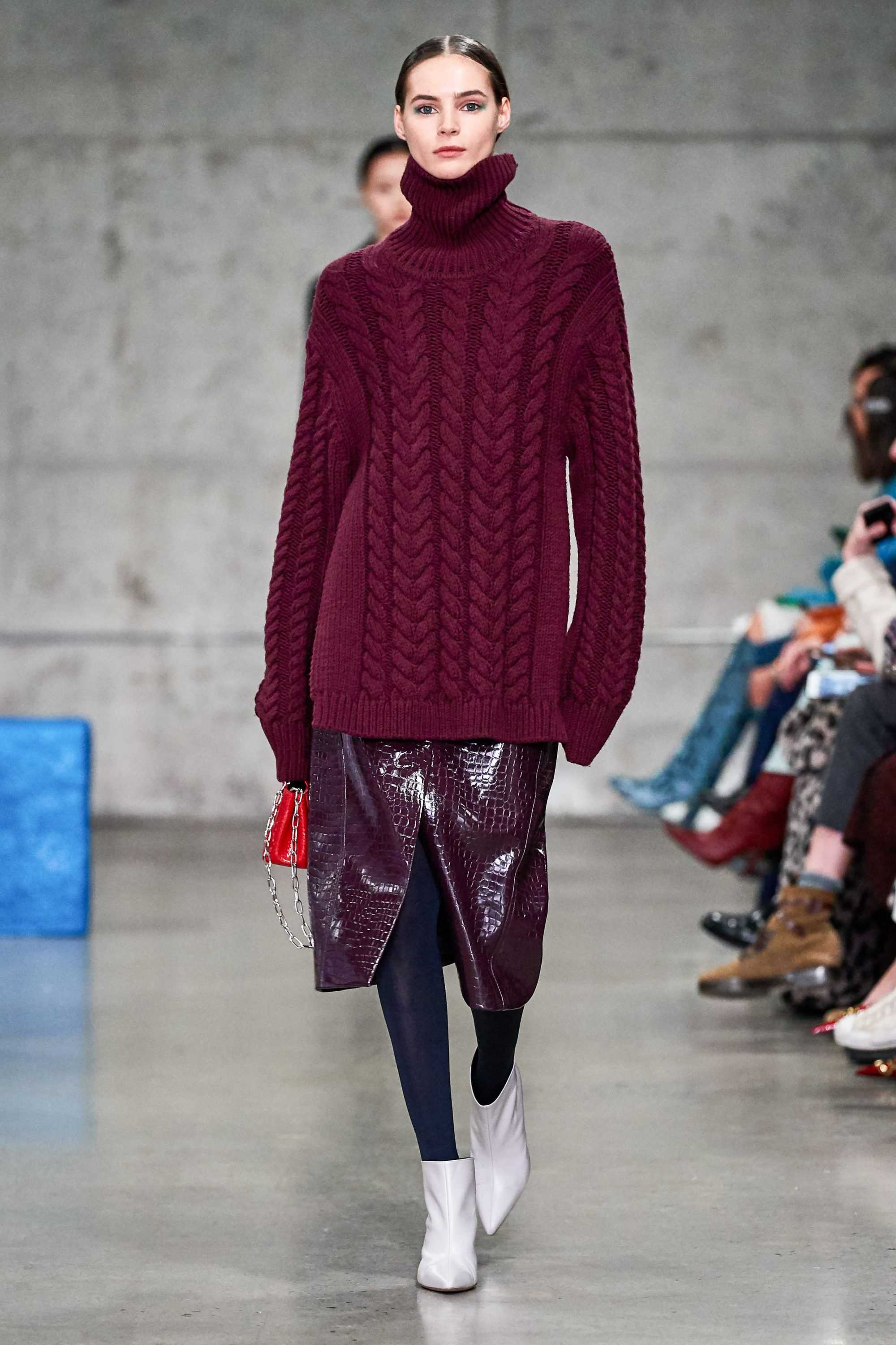 Стильная вязаная одежда от кутюр представлена свитерами с крупными косами, разным декором, бахромой, скандинавскими мотивами, высоким воротом или V-образным вырезом. Вязка может быть выполнена различными способами: