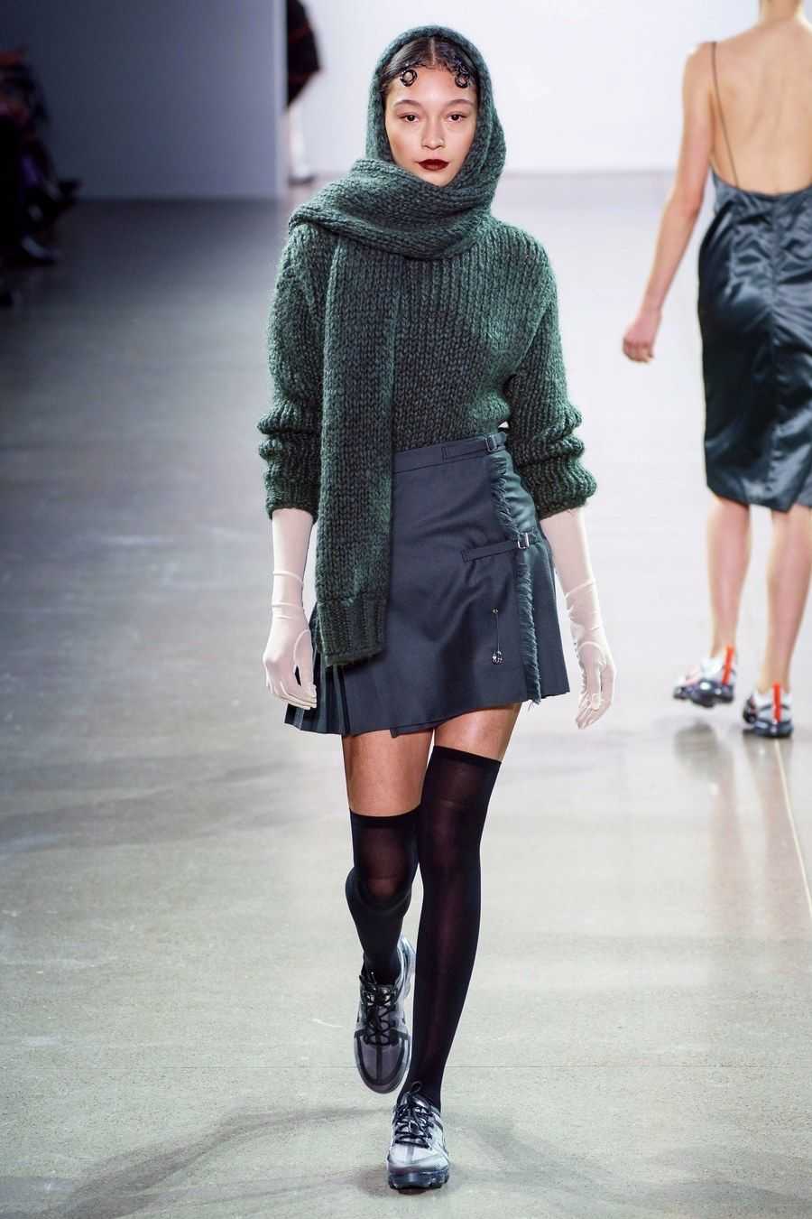 Valentino предлагает длинные кожаные перчатки в качестве украшения и утепления рук, которые остаются открытыми. IRO рекомендует накинуть жилет поверх свитерка. Получается интересный и многослойный образ, где верхняя одежда вроде есть, но она скорее украшает, чем согревает.