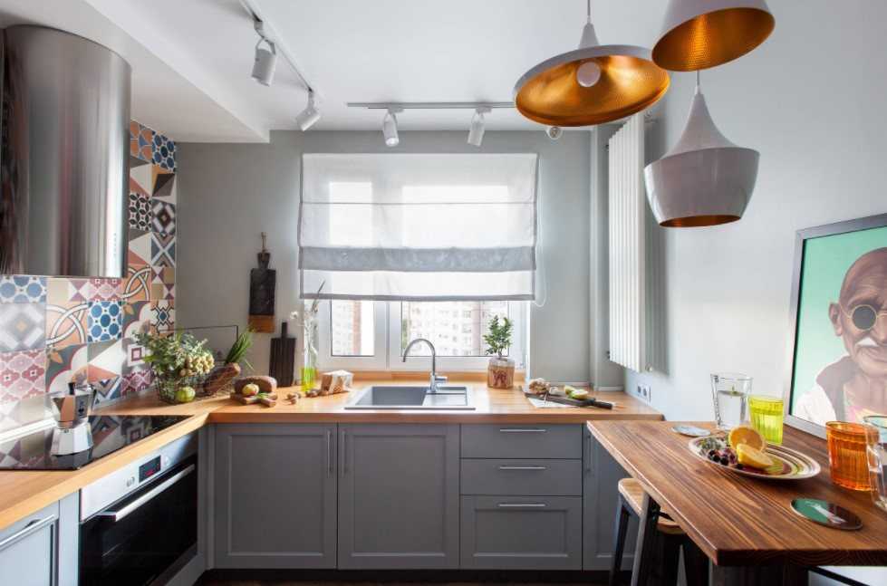Если выбрана имитация натуральных материалов, она должна быть достоверной и качественной. Особенно это заметно на кухнях и в ванных комнатах, где столешницы из шпона заменяются прочными композитами и конгломератами, а вместо плитки и панелей появляются крупноформатные кварцевые агломераты.