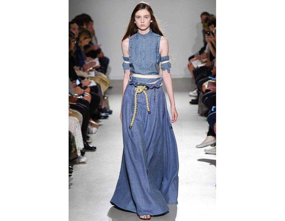 Абстрактные орнаменты, вышивка, цветочные узоры, будто обволакивающие силуэт, должны прийтись по вкусу как зрелым дамам, так и совсем юным барышням. Короткие модели помогут создать молодежный и игривый образ, а миди длина отлично впишется в деловой сет. Пышная юбка из денима – тоже далеко не новинка, варианты объемных подолов можно встретить в большинстве коллекций именитых кутюрье.