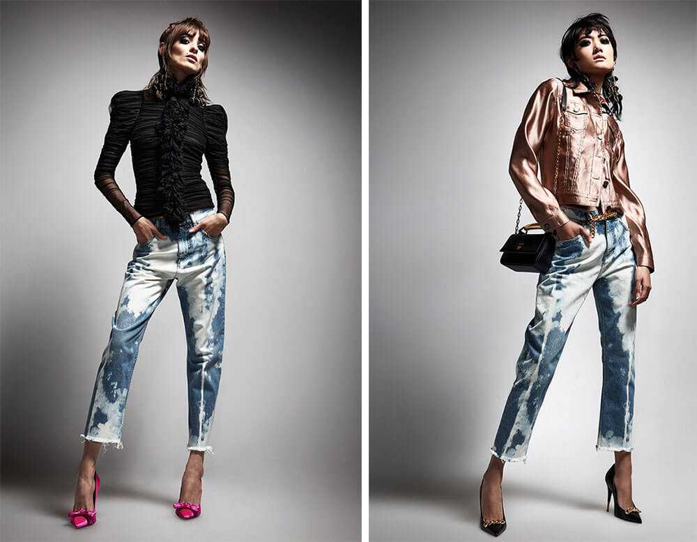 Основная тенденция в мире джинсов: равнение на 90-е годы прошлого века. Классические джинсы-бананы этого сезона отличаются от фасонов 30-и летней давности не столь выраженным галифе в области бедер.