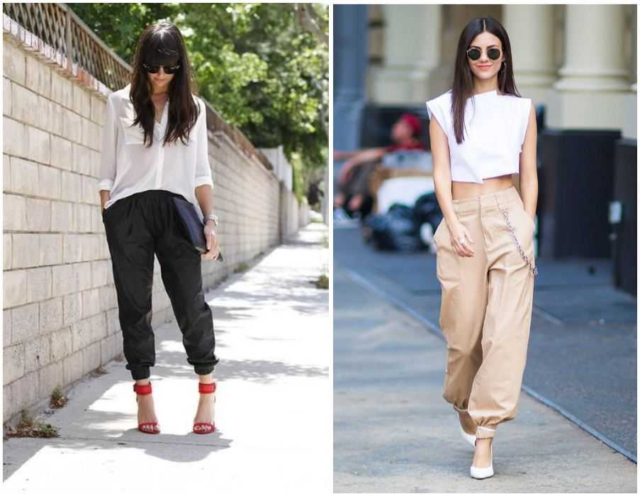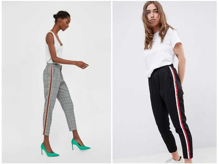 Тренд этого года — лампасы — не обошел стороной старые добрые брюки бананы. Этот акцент на штанах подойдет ярким и стильным девушкам. Сочетайте со спортивной обувью для прогулок, а яркие туфли на высоком каблуке преобразят лук для вечеринки.