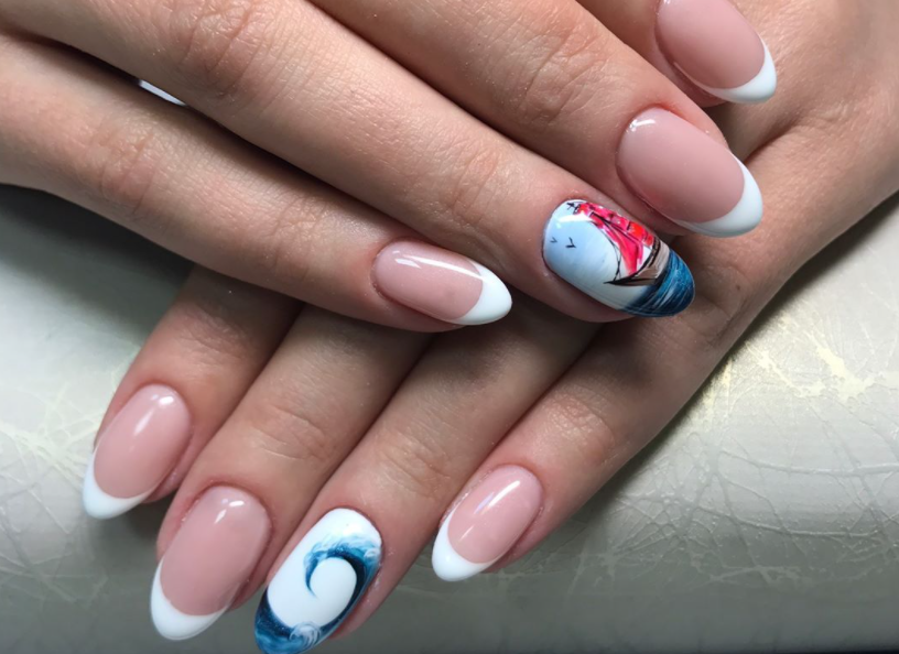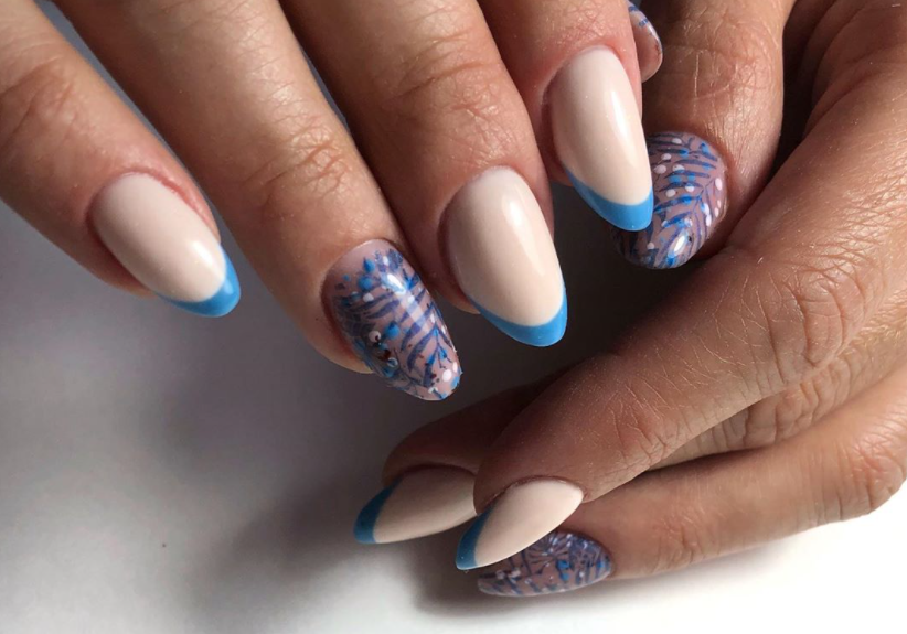 Этно орнаменты, вычурные узорчики, кружевные аппликации, изображение природы прекрасно выглядят на коротких ногтях в соединении с френчем. Изобразить задуманное легче всего с помощью гель-лака, акрила и лака. Основная задача – правильно выбрать цветовую палитру. Самому дома почти невозможно добиться данного эффекта.