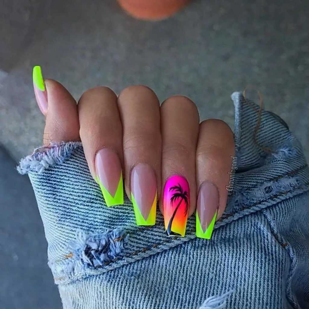 Яркий неоновый дизайн будет в тренде и не позволит ногтям выглядеть тускло и скучно. Неоновые яркие цвета особенно подходят для тёплого времени года, этот дизайн любят многие известные стилисты. Такие оттенки всегда будут пользоваться спросом у женщин, которые хотят быть модными, красивыми.