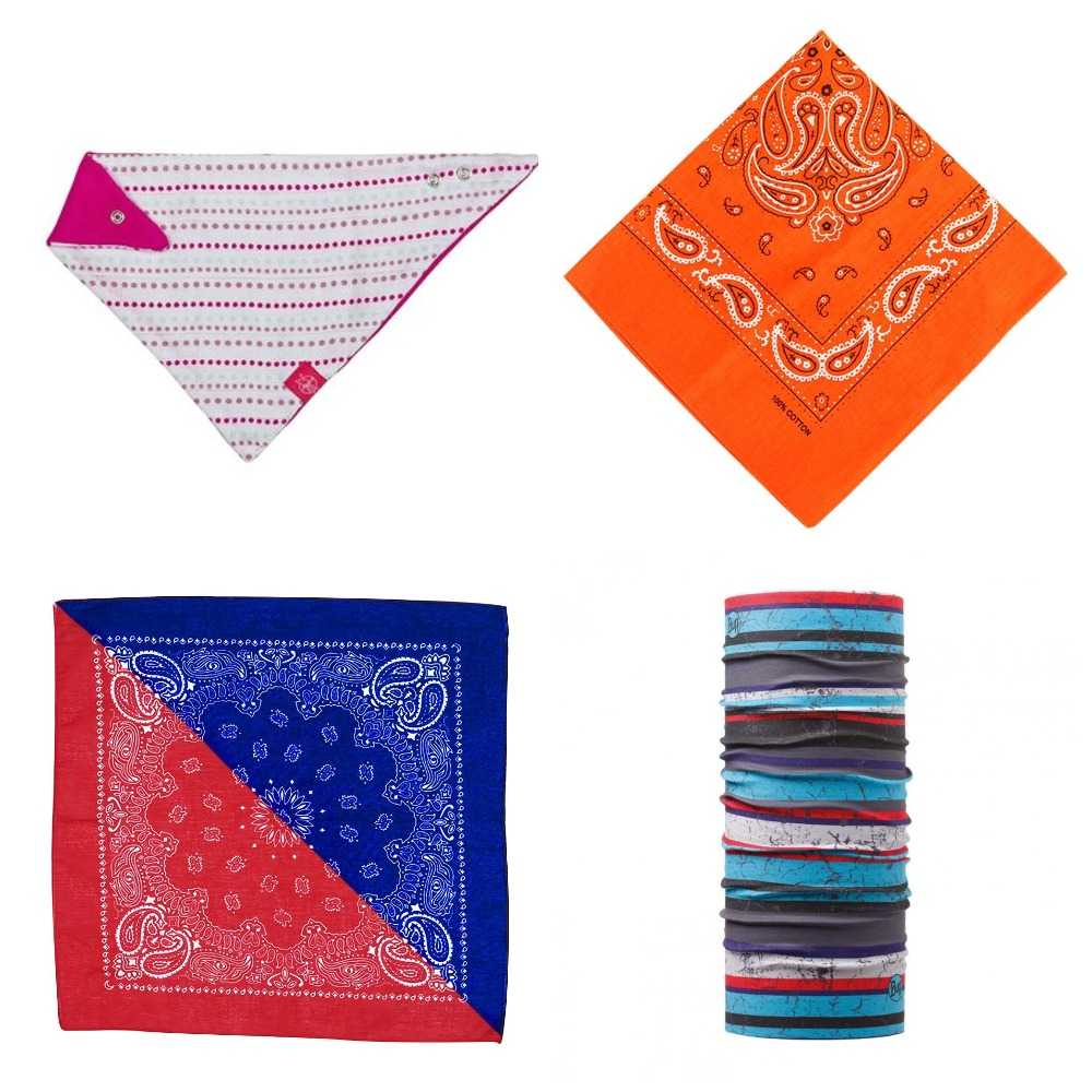 Различают несколько видов бандан. Косынки используют в качестве повязки на шею, платки с длинными концами отлично подходят для создания стильных тюрбанов. Бафф универсальны, ими покрывают голову, лицо, некоторые модели станут отличной заменой привычных шарфов.