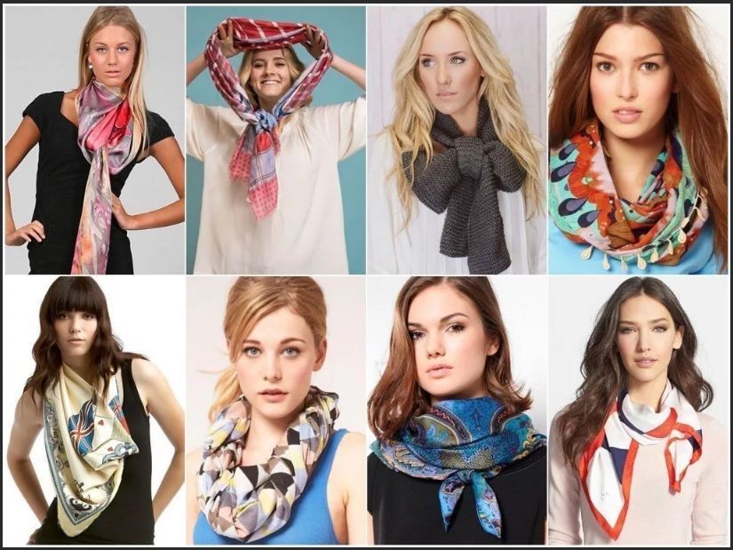 После того, как вы нашли среди всего разнообразия подходящий шарф, встает другой вопрос: как его носить? Вариантов много, самые распространенные следующие: