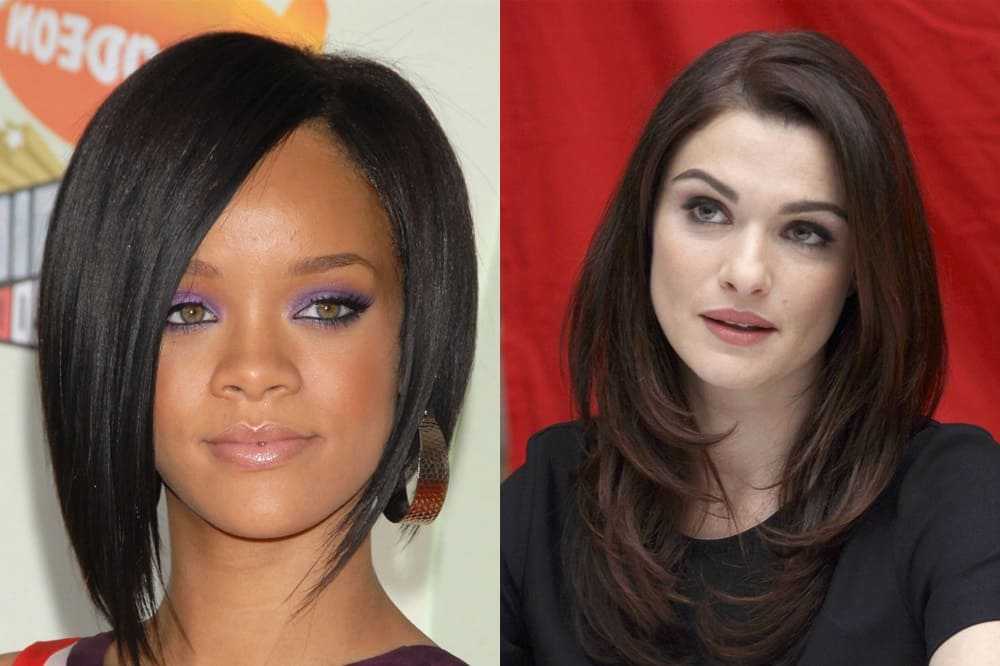 Длинные волосы имеют место быть у обладательниц вышеупомянутой формы только в том случае, когда они будут не прямыми, а кудрявыми. Тогда ширина лица будет немного увеличиваться, форма станет почти идеальной. Желательно иметь челку, так как она сделает лицо чуточку меньше, чем оно есть, и скроет собой массивный лоб, который обычно бывает у всех обладательниц данной формы лица. При прямоугольном лице категорически нельзя создавать объем на макушке.