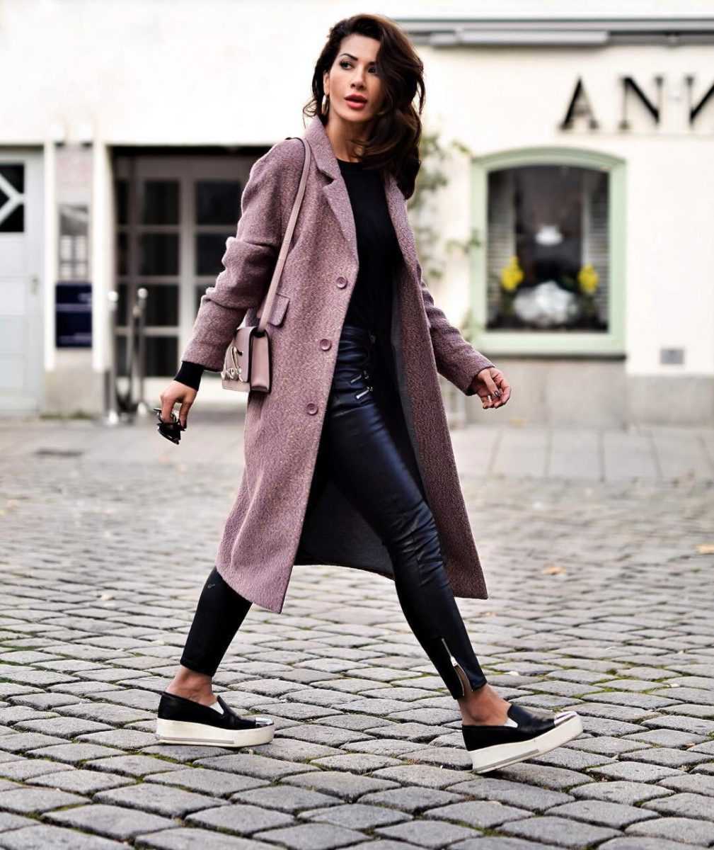 Пожалуй, за такой образ модницы десятилетия назад получили бы массу негативных отзывов. Но в 2021 женское демисезонное пальто действительно можно сочетать со спортивными штанами. Между прочим, такие ансамбли успели выгулять многие знаменитости. А почему бы и нет? Ведь в комфортном и мягком спортивном костюме, в теплом пальто на плечах в одно удовольствие прогулка прохладной весной или осенью.
