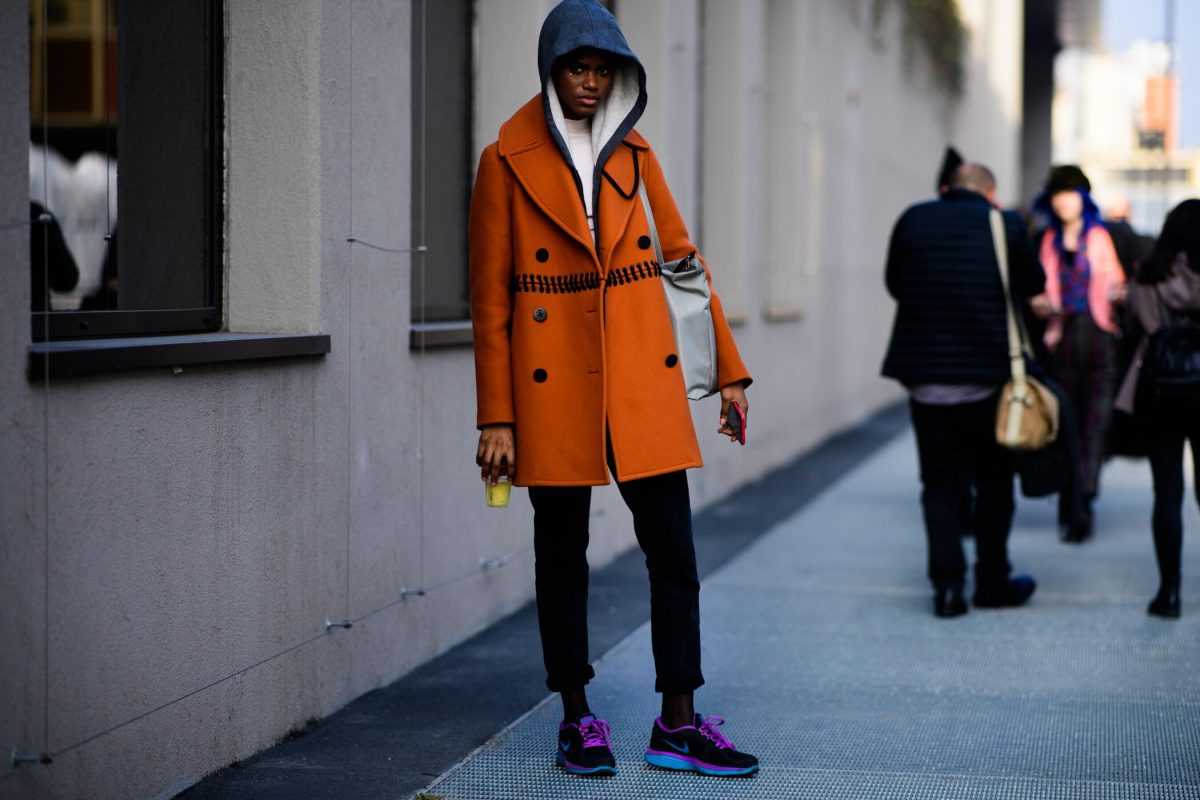 - Лучше всего носить спортивные штаны с длинными демисезонными пальто.