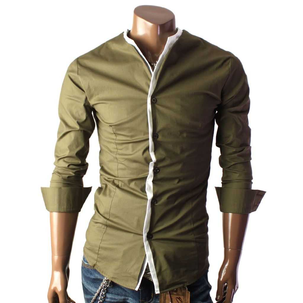 Рубашка без воротника подходит для мужчин, которые не носят галстуки. Рубашка с воротником-стойкой носится расстегнутой и может быть выполнена как с длинными, так и с короткими рукавами.