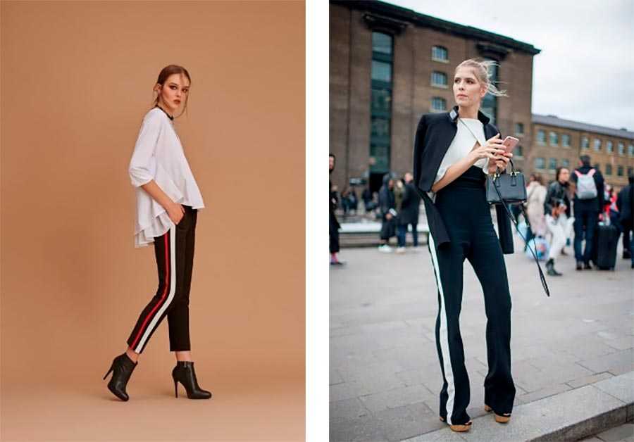 Модными брюками считаются варианты более свободного кроя, палаццо, брюки с расширенной линией бедра. Чтобы подчеркнуть женственность, можно выбрать брюки с завышенной талией, для модниц отлично подойдут брюки с разрезами, брюки из кожи или эко-кожи. К антитрендам относятся брюки с лампасами, лучше эту декоративную деталь оставить для спортивных брюк и носить их в соответствующем стиле.