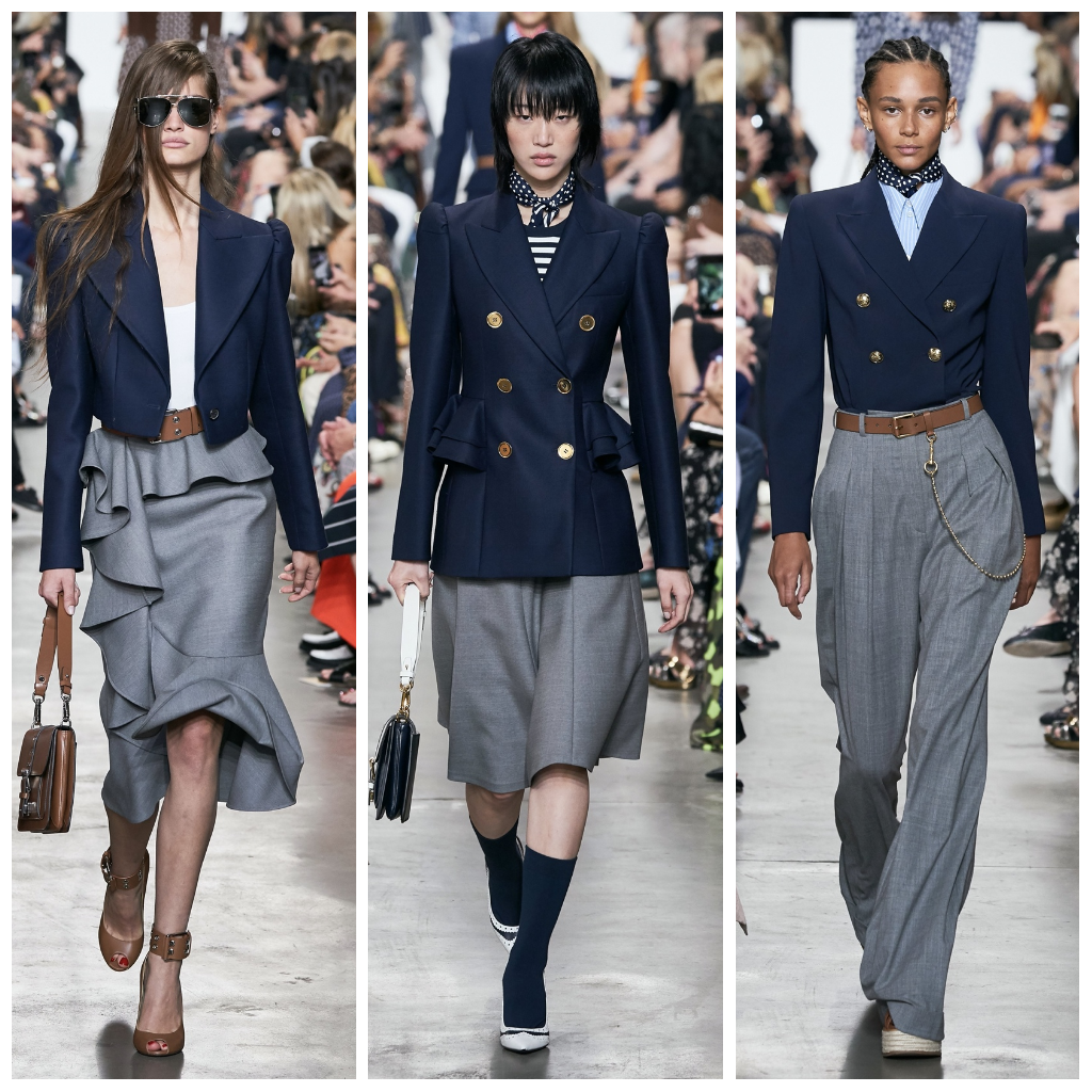 Очень спокойное и лаконичное сочетание, которое можно смело адаптировать под офисный стиль. В качестве примера сразу несколько удачных образов с показа Michael Kors.
