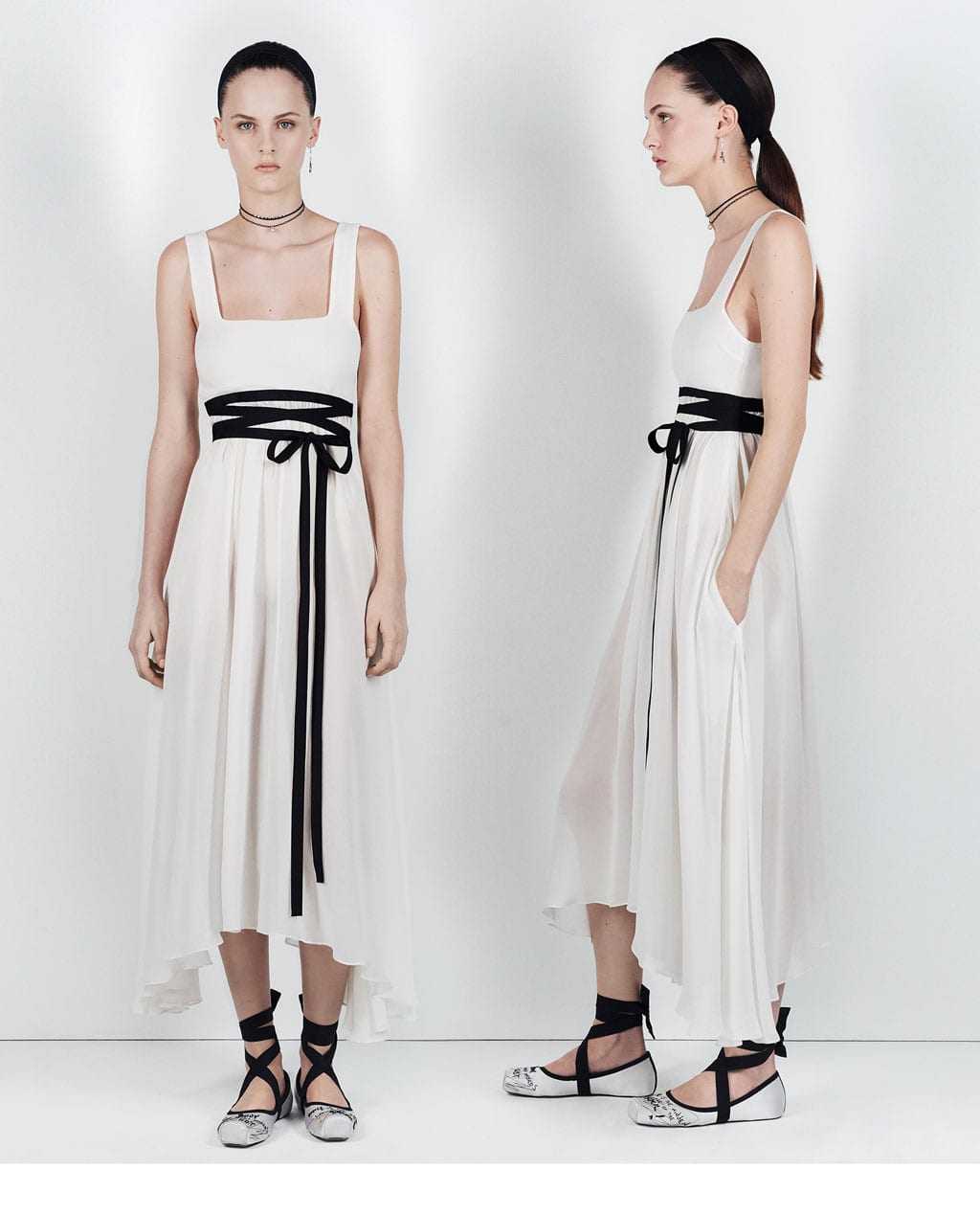 Более коктейльные варианты модных платьев-комбинаций есть в Zarina – одна модель с нитями люрекса, а другая – с пайетками.