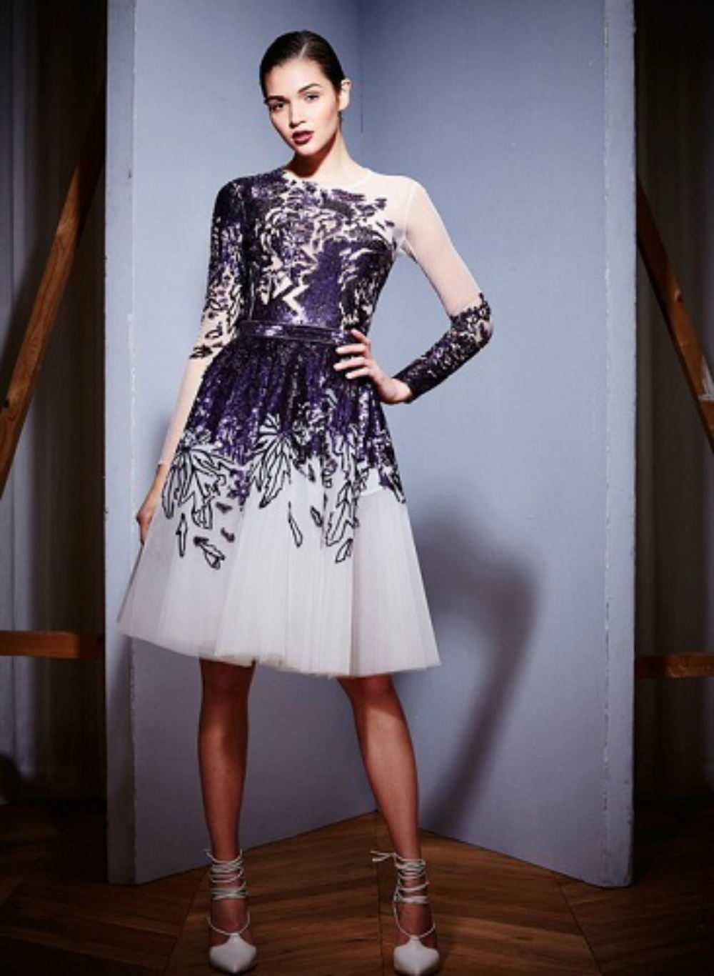 Ажурные узоры стали хитом нового сезона. Их комбинируют с другими текстурами, материалами. К примеру, кокетливо смотрится платье длины мини, миди с кружевным лифом и многослойной юбкой из органзы. Ажурные узоры прекрасно сочетаются с атласными, бархатными тканями. Подобные наряды выглядят не только празднично, но и стильно.