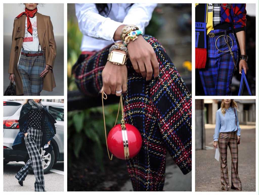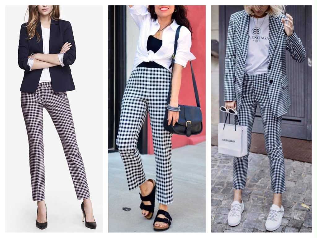 Подбирая брючки стоит соотносить их фасон с особенностями фигуры. Крупная клетка визуально укорачивает. Поэтому, если рост маленький и хочется казаться выше, то нужно искать низ с мелким узором. Мелкая клетка также подойдёт для полных девушек.