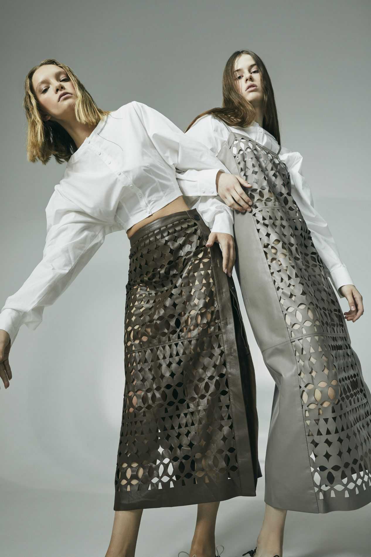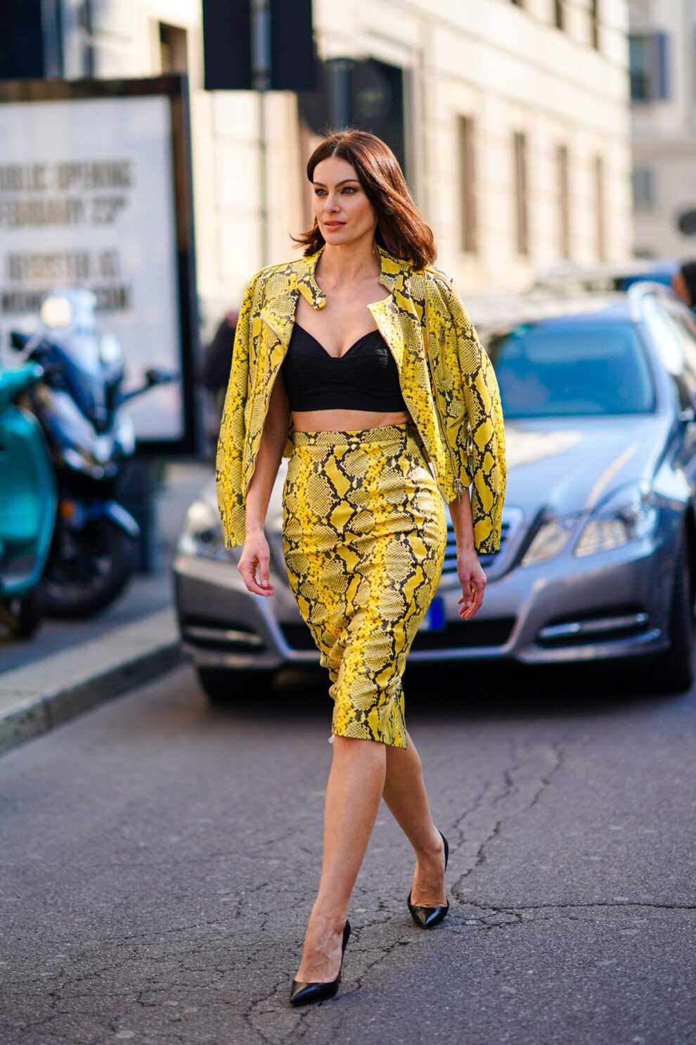 Так, среди кожаных брючных костюмов «а-ля Тринити», платьев с объемными рукавами, кюлотов и жакетов в стиле 1990-х, особое внимание досталось кожаным юбкам. Streetstyle-активистки охотно примеряют лаконичные прямые миди во всех оттенках карамели, шоколада и нюда, и при этом не забывают об эффектных разноцветных парах из экзотической кожи