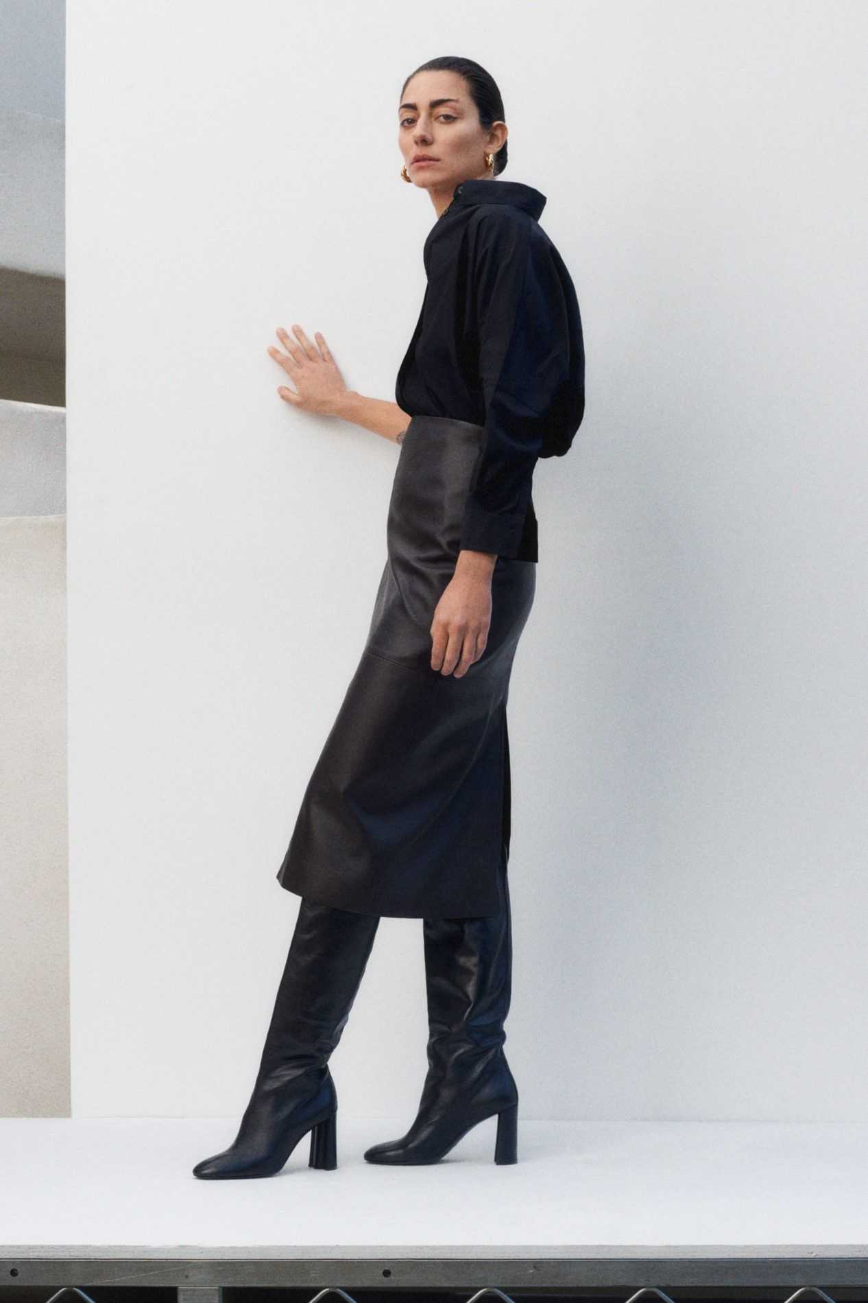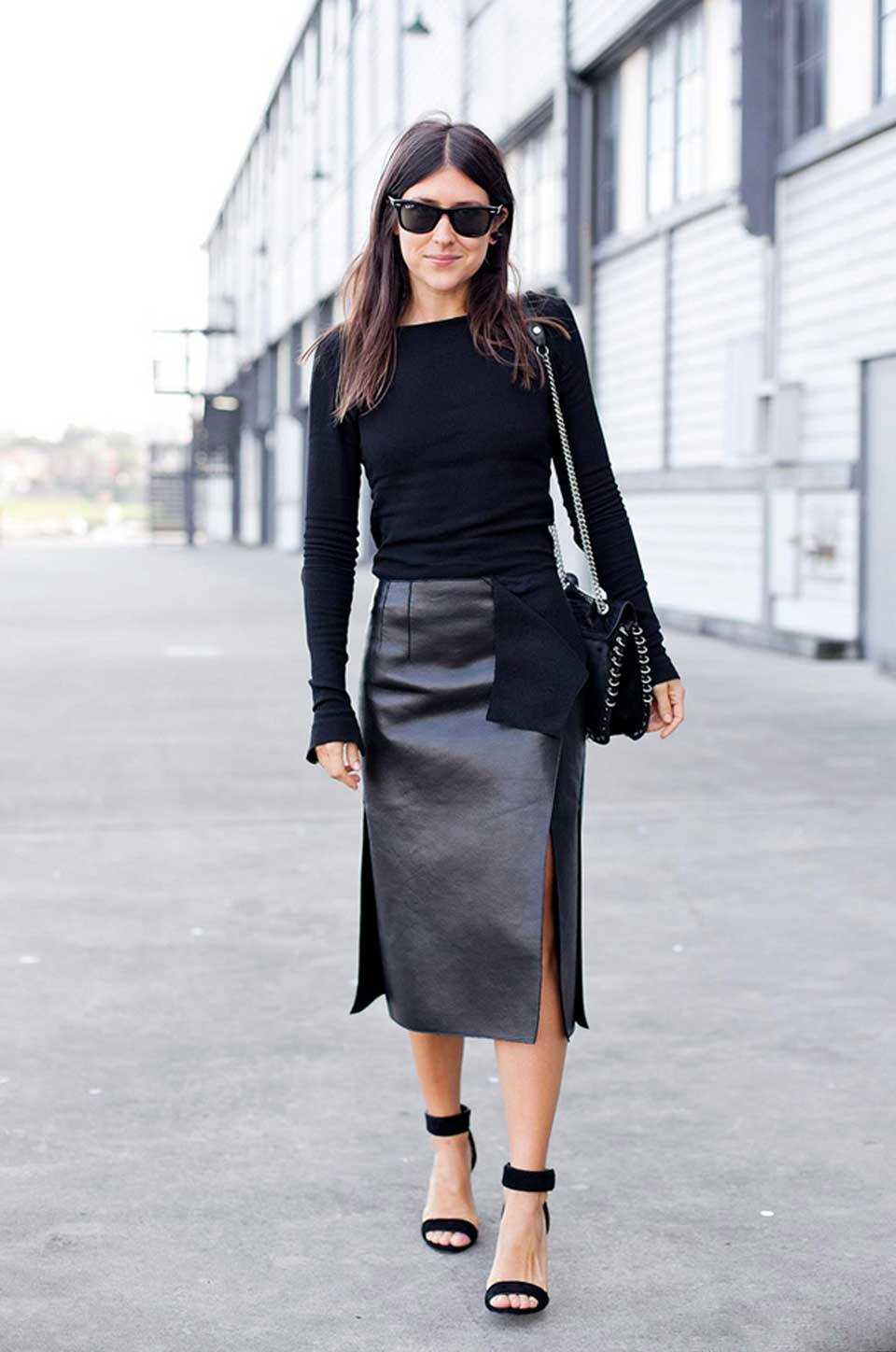 Кожаная юбка-карандаш – классическая модель для создания элегантного образа