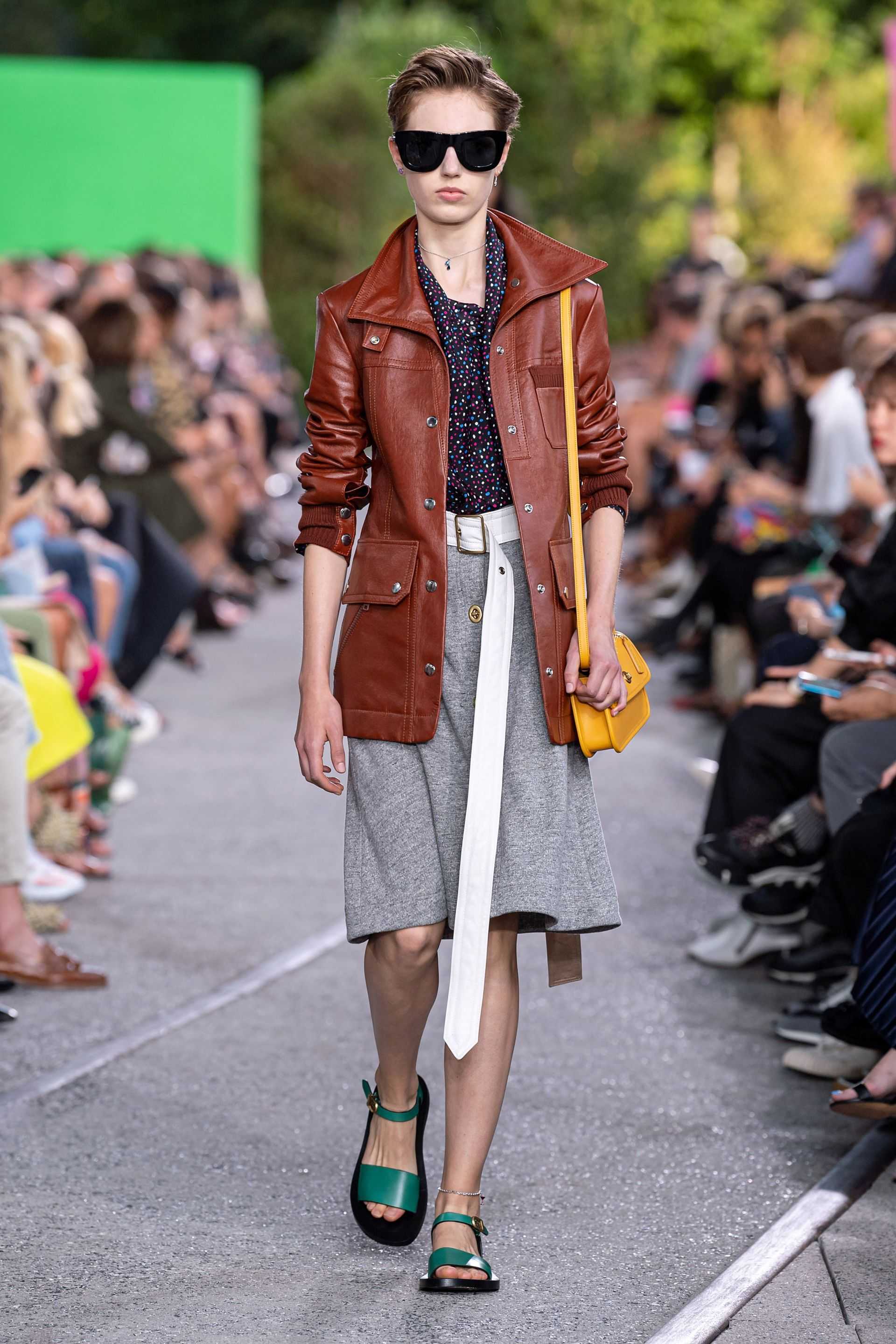 Более спокойные оттенки – кофейные, бежевые, серые и коричневые – можно найти у Drome, Miu Miu, Proenza Schouler, Coach и других. Hermès не отстает от трендов и создает приталенный жакет в стиле сафари – с накладными карманами и металлическими деталями, Versace делает акцент на необычной форме рукавов, а Burberry показывает максимально практичную двуцветную модель, которую можно носить и с широкими джинсами, и с юбками-карандашами.