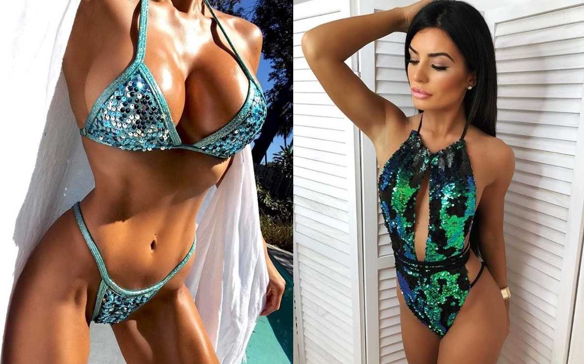 Купальник с пайетками все чаще встречается на модных показах. Такая одежда для пляжа выглядит более интересно, отличаясь от моделей с блестками, цепочками или стразами. Она подходит для создания стильных и роскошных аутфитов, благодаря чему любая женщина может включить ее в свой пляжный гардероб.