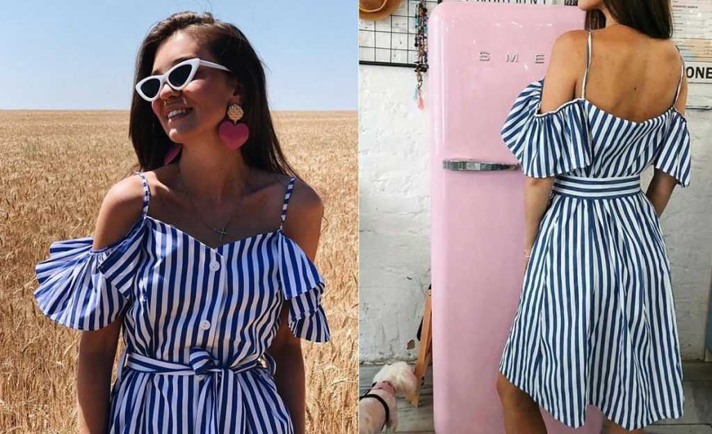 Если хотите выглядеть женственно и сексуально, обратите внимание на одежду с открытой линией плеч и шеи. Сарафан с воланом на плечах подчеркивает хрупкость и нежность, задает образу романтический тон, подчеркивает красоту фигуры