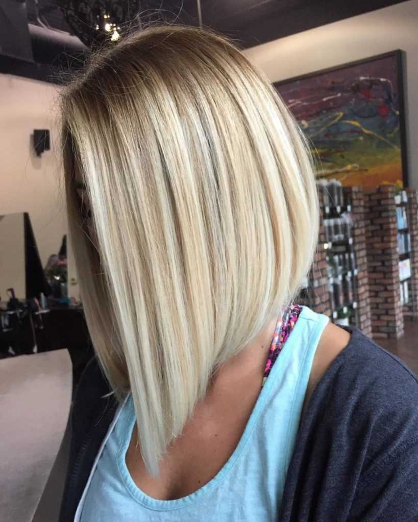 - И классический, и лонг-боб с мелированием смотрится необычайно стильно.
