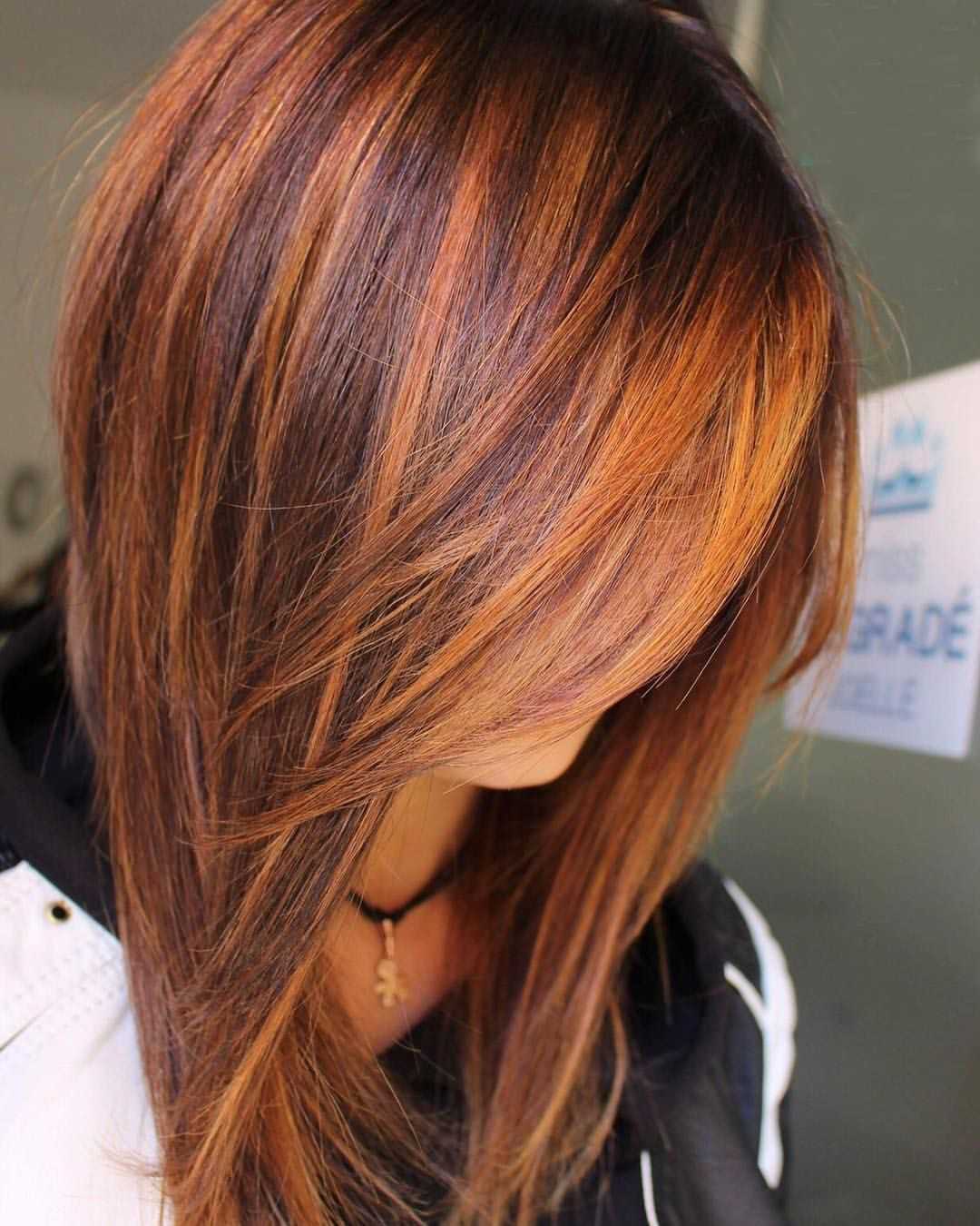 Насыщенный красно-коричневый оттенок делает образ ярким и заметным. Красные, золотистые тона можно получить на волосах, которые были осветлены до 8-го уровня или светлее. Если вы решились на эксперимент — будьте готовы к осветлению. Медные локоны отлично смотрятся с разными оттенками кожи и цветом глаз.