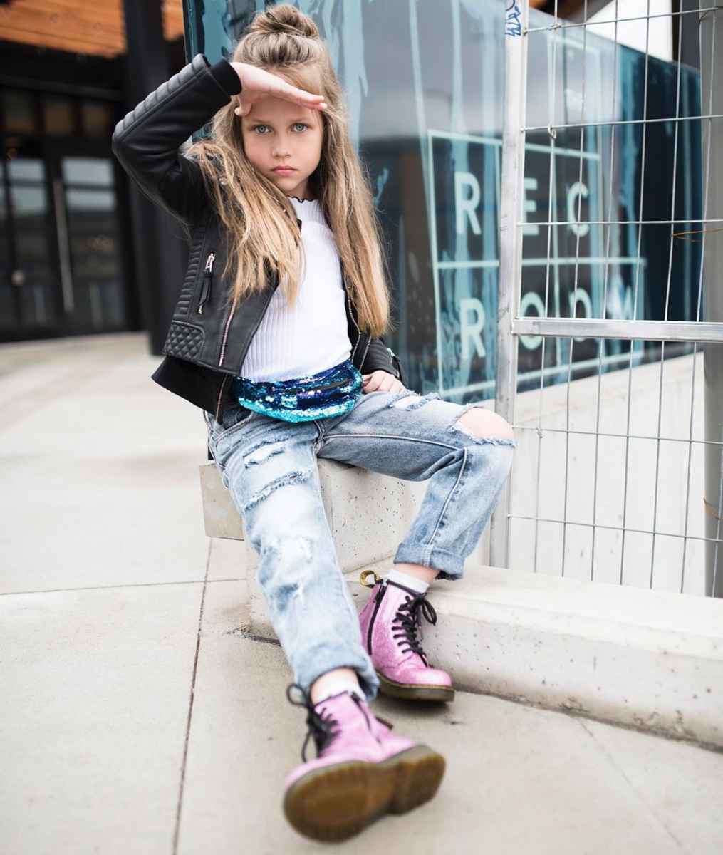 Джинсы медленно превращаются в неувядающую классику. Каждый сезон только дополняет “копилку достижений” этого материала. В 2020 у каждой маленькой модницы должна быть пара “вареного” денима. Дырки на коленях, потертости, заколотые булавками или еще какой-то декоративный элемент – обязательны.