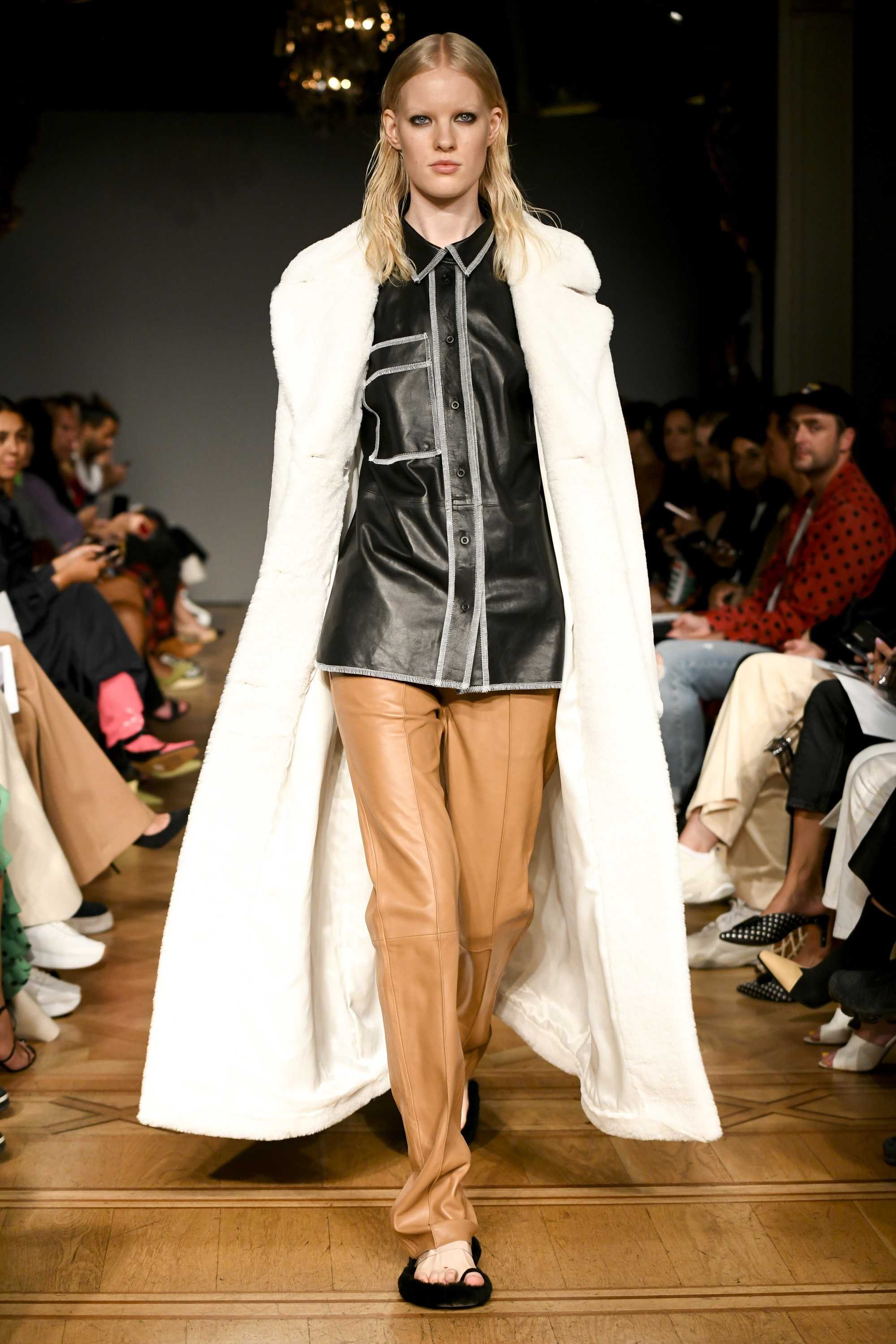 Но модное кожаное пальто осени 2019 может быть выполнено из кожи питона, искусственной, лакированной кожи или винила, стеганой и даже тисненой кожи. Такие кожаные пальто мы находим в осенних коллекциях Tod’s, Hermès, Annakiki, Alexander Wang, Alberta Ferretti, Balenciaga, Balman и др. Кожаные пальто этой осенью появились не только в черном, но и в роскошных оттенках синего в Cédric Charlier, зеленого в Off / White.