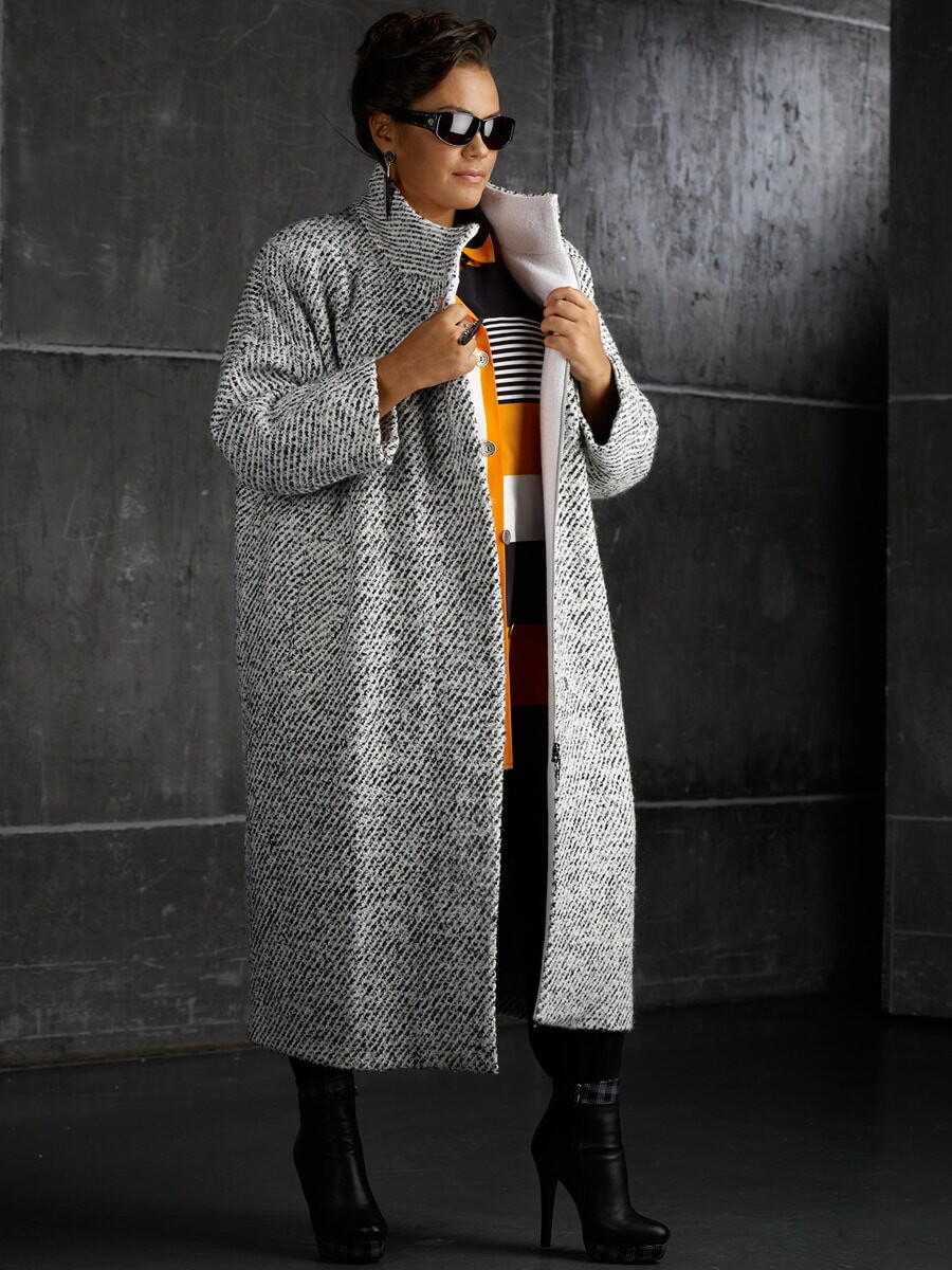 Одним из наиболее оптимальных и модных вариантов становится пончо. Оно прекрасно смотрится на женщинах пышных комплекции и размера. Не думайте, что это просто бесформенный мешок. В наступающем сезоне дизайнеры предлагают совершенно другой подход к пошиву пончо. Они выглядят элегантно, строго и женственно. Модное пальто для полных представлено еще двумя оригинальными моделями.
