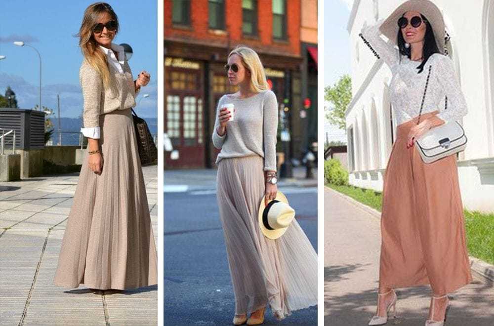 Если есть огромное желание приобрести юбку-макси, то следует выбирать светлую спокойную цветовую гамму, чтобы не утяжелять образ.