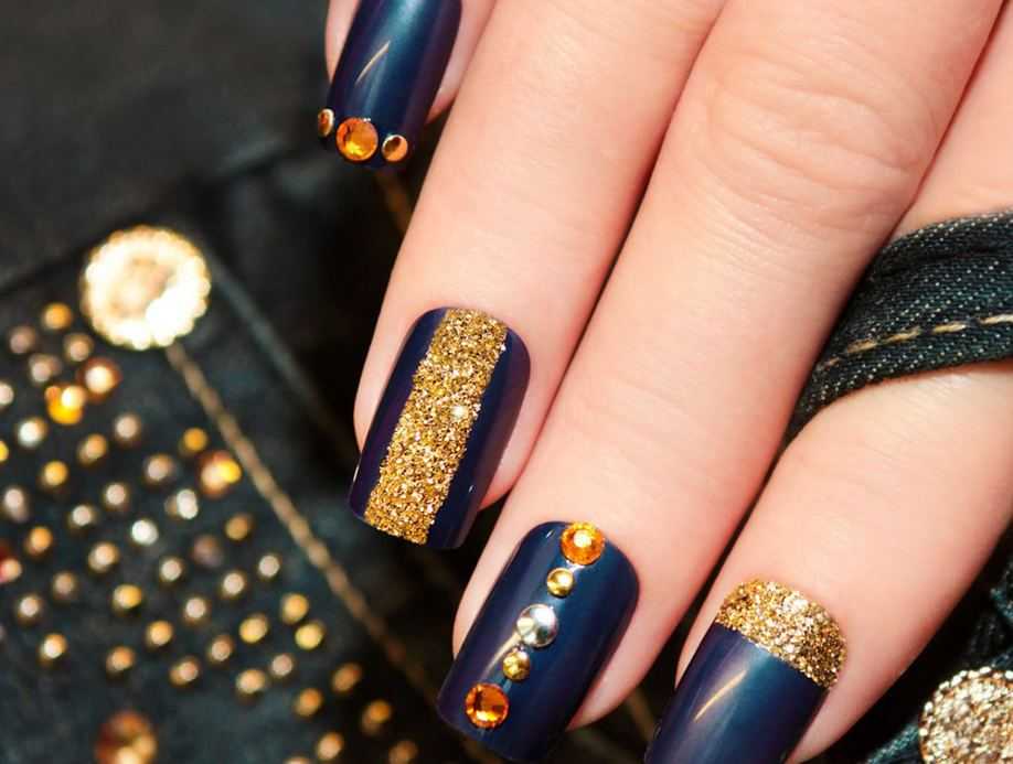 Эффектнее всего кристаллы смотрятся на ярком, даже темном лаковом покрытии – черном, бордовом, изумрудном, глубоком синем. Благодаря подобному контрасту маникюр выглядит сверкающим и особенно нарядным.