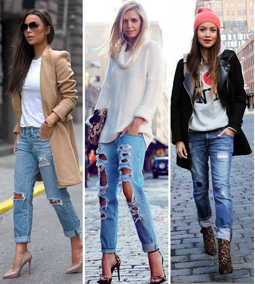 Образы на весну, осень с черными, синими, рваными джинсами и джинсами бойфренд