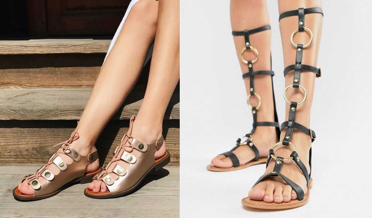 Нет никаких сомнений в том, что самая летняя обувь – это сандалии. Именно они являются идеальным вариантом для отпуска или для воскресных прогулок по парку после тяжелой рабочей недели. Бессменным фаворитом среди сандалий, несмотря на вечно меняющиеся модные тенденции, являются греческие сандалии-гладиаторы с несколькими пряжками, которые обвивают стопы и щиколотку. Смело носим такие сандалии с платьями-туниками и шортами!