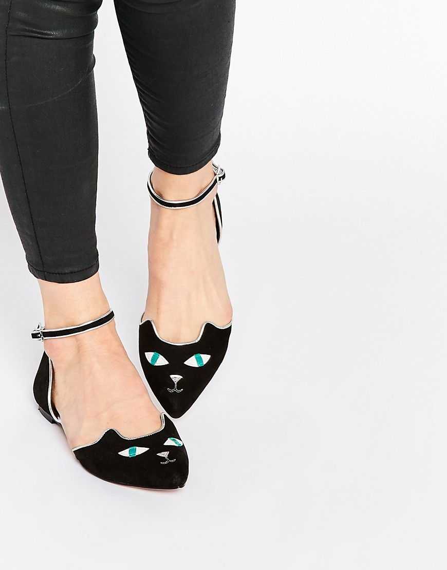 Остроносые лодочки без каблука выглядят изящно, делают стопу аккуратной, а дополнительный декор или металлизированный оттенок позволяют носить такую обувь даже с вечерним платьем в пол.