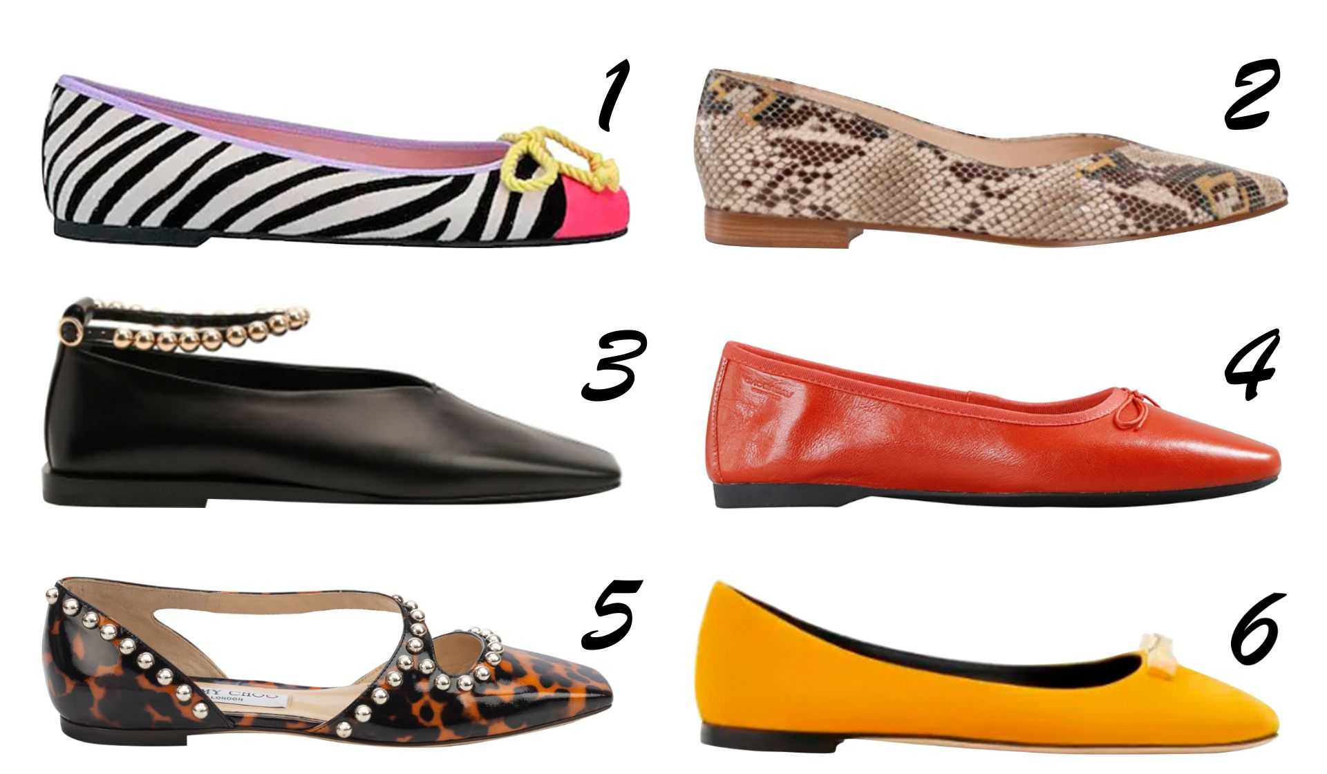 1 – Pretty Ballerinas, 2 – Ekonika, 3 – Jil Sander, 4 – Vagabond, 5 – Jimmy Choo, 6 – Giuseppe Zanotti